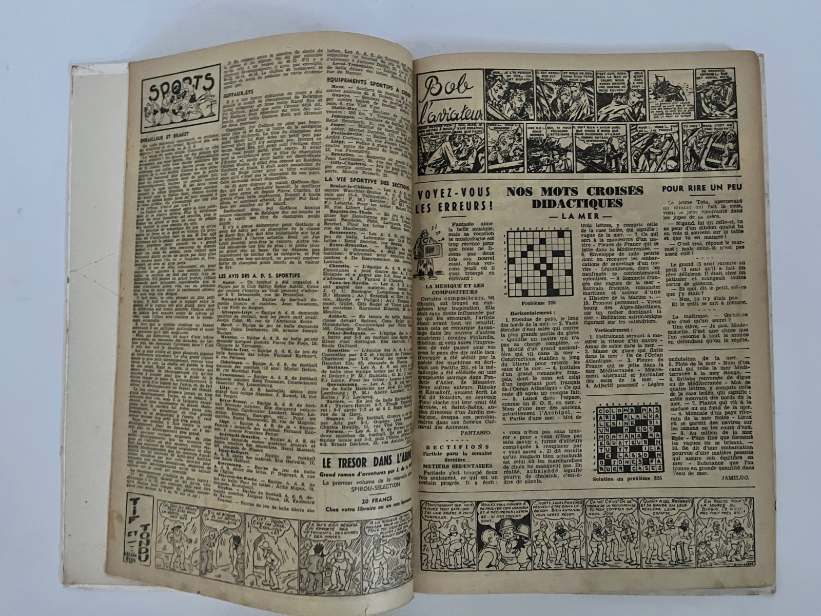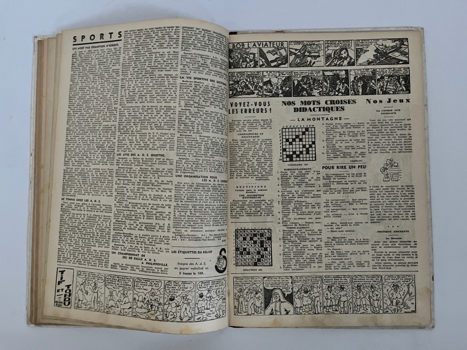 Bel à très bel état – Les plats ont été restaurés avec soin – Dos d’origine en très bel état – Restauré au niveau des coiffes – Tranches avec quelques traces du temps – Cahier intérieur en très bel état avec quelques tâches du temps – Pas de pliures de lecture – Deux déchirures de lecture sans manque papier sur la page des mots croisés du fascicule N°27 et N°31 avec une petite déchirure également sur la page des mots croisés