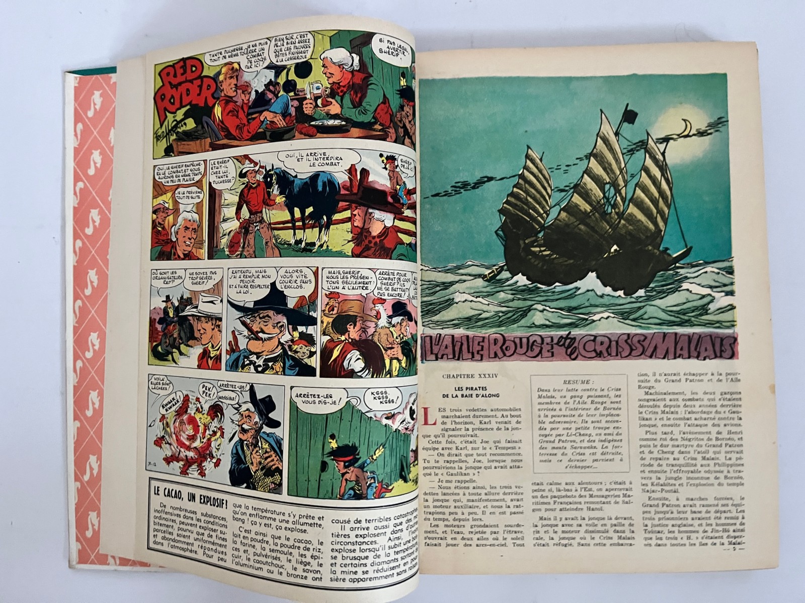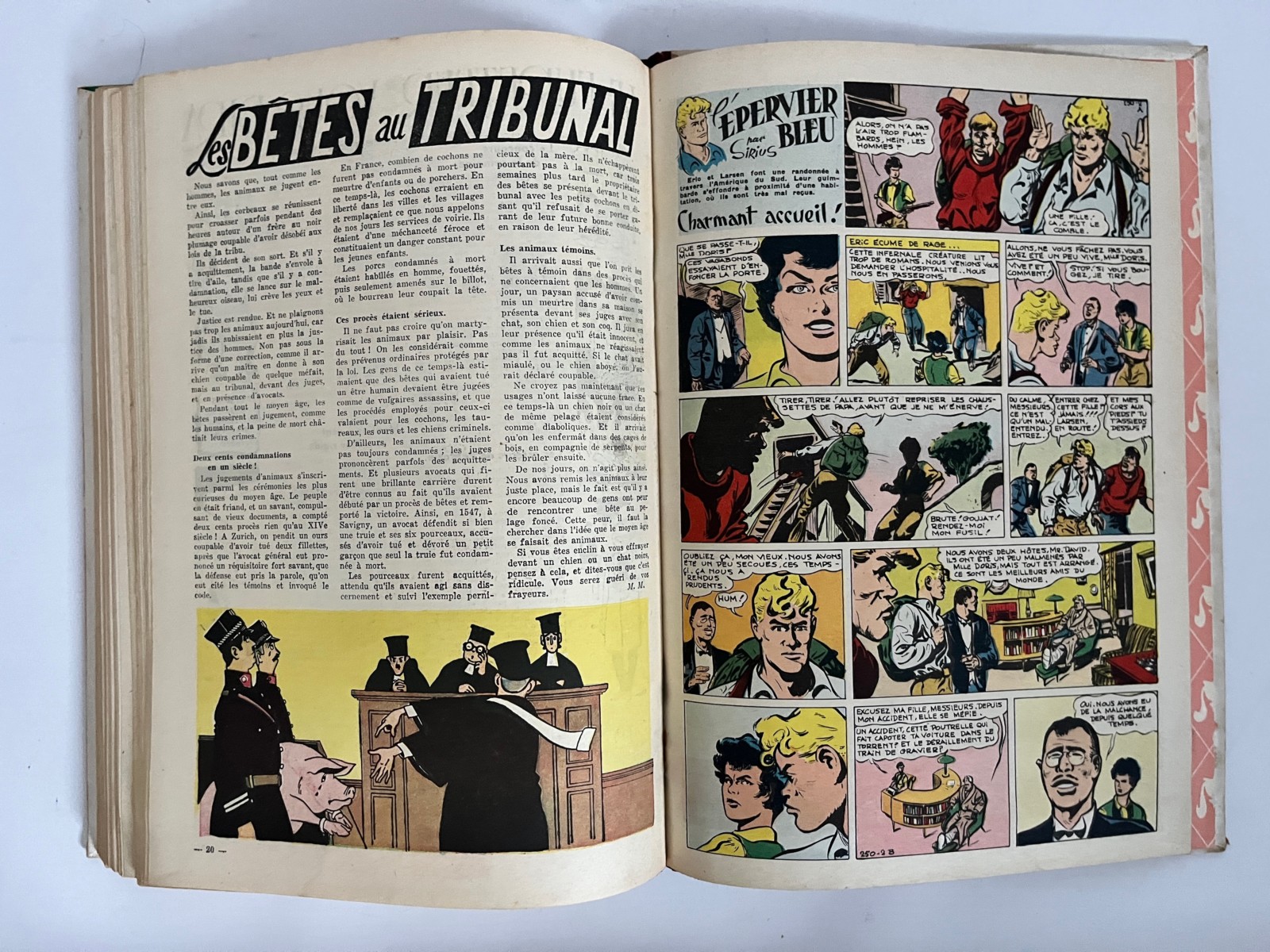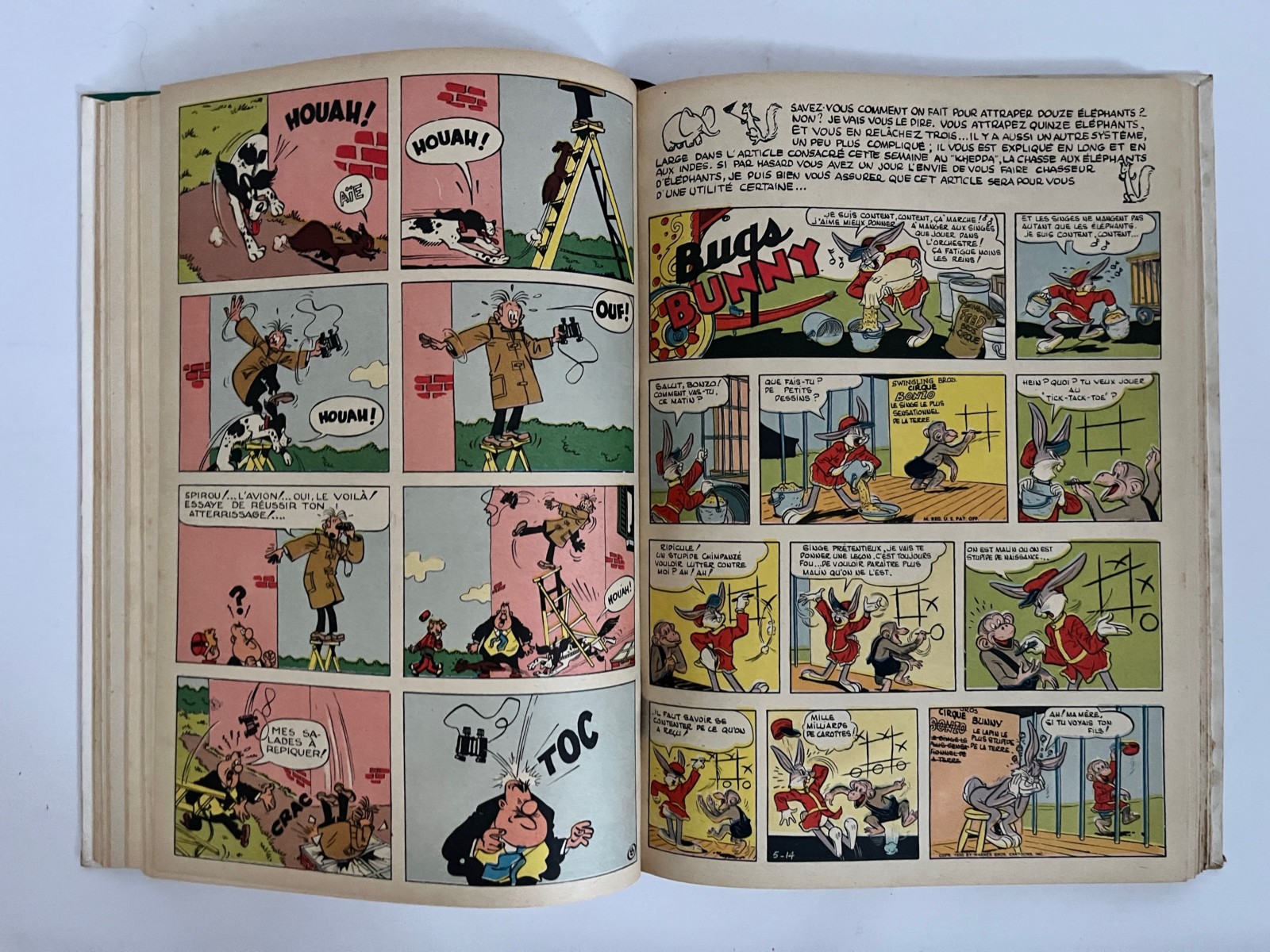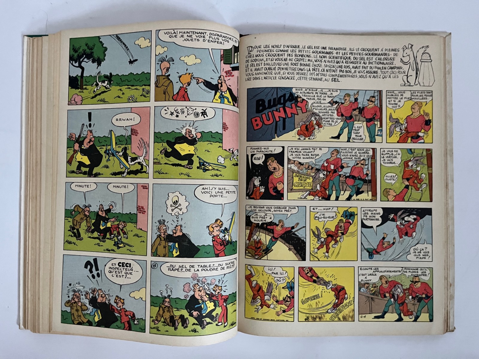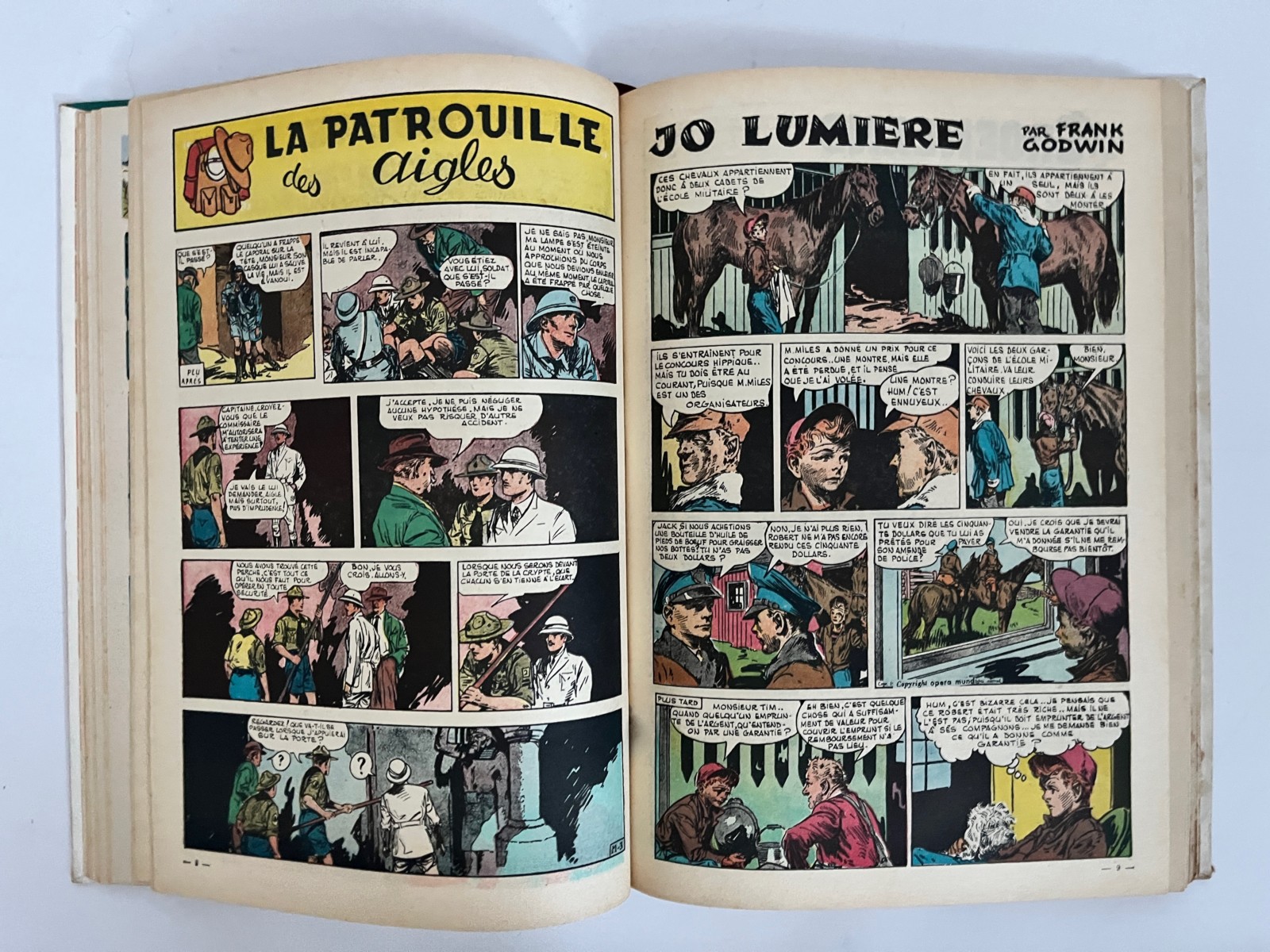 Très très bel état – Plats bien vifs avec légères traces du temps – Dos impeccable d’origine – La colle poisson du dos a classiquement déteint – Coiffes en bon état – Coins encore bien conservés – Tranches quasi non frottées – Intérieur très frais – Cahier intérieur bien homogène – Quelques légères tâches du temps – Coin inférieur des pages du fascicule N°647 (7/09/50) légèrement pliées – Pas d’autres pliures de lecture – Pas d’annotations – Pas de déchirures