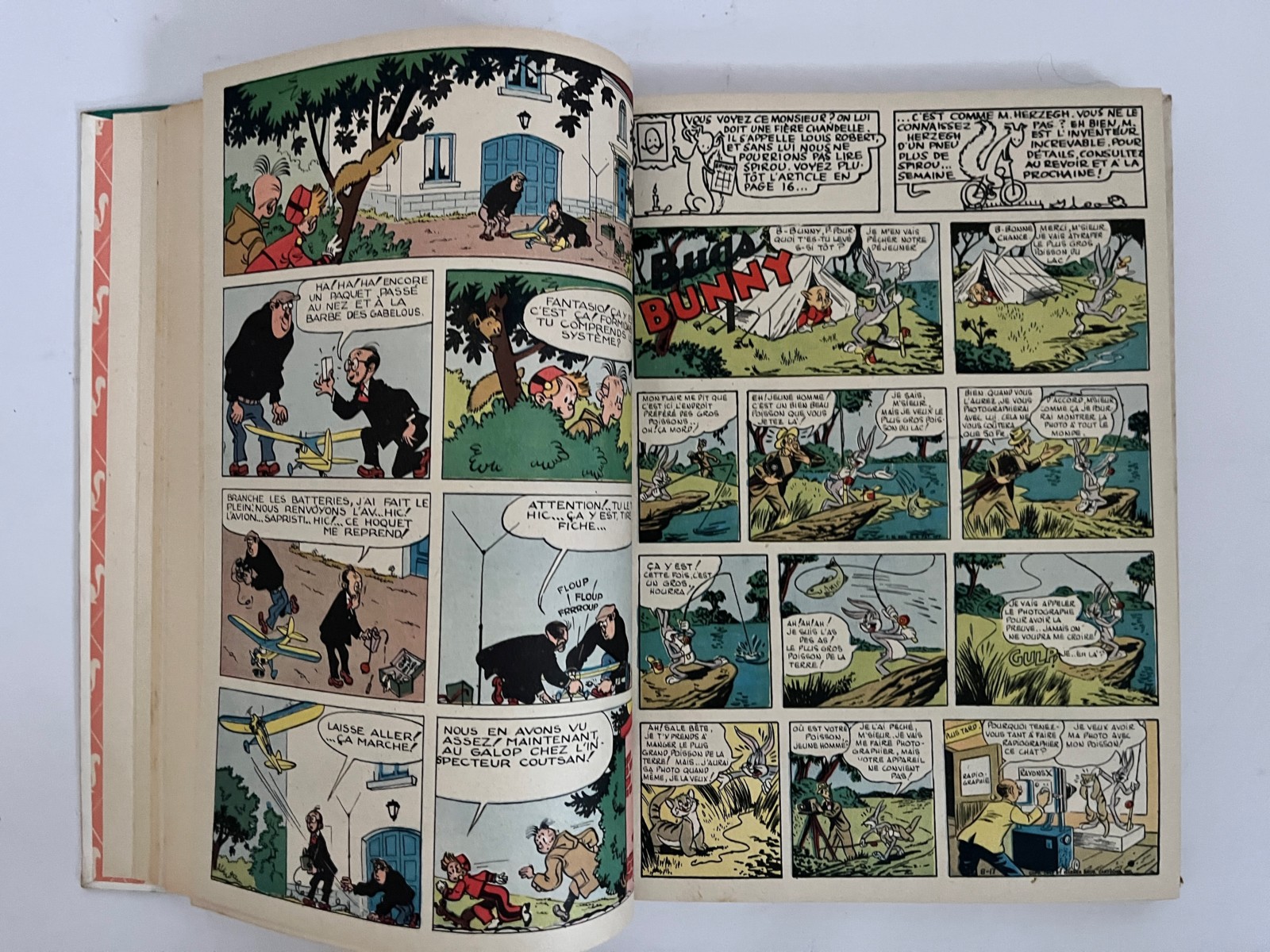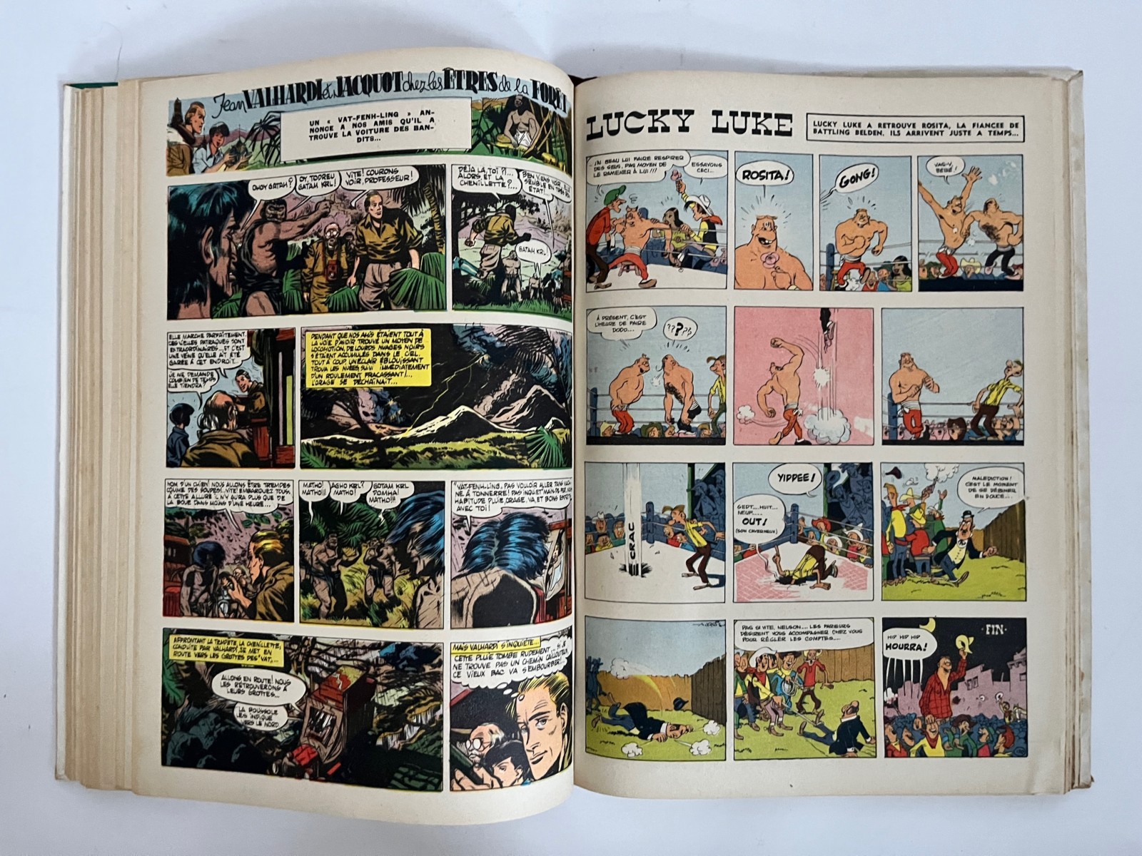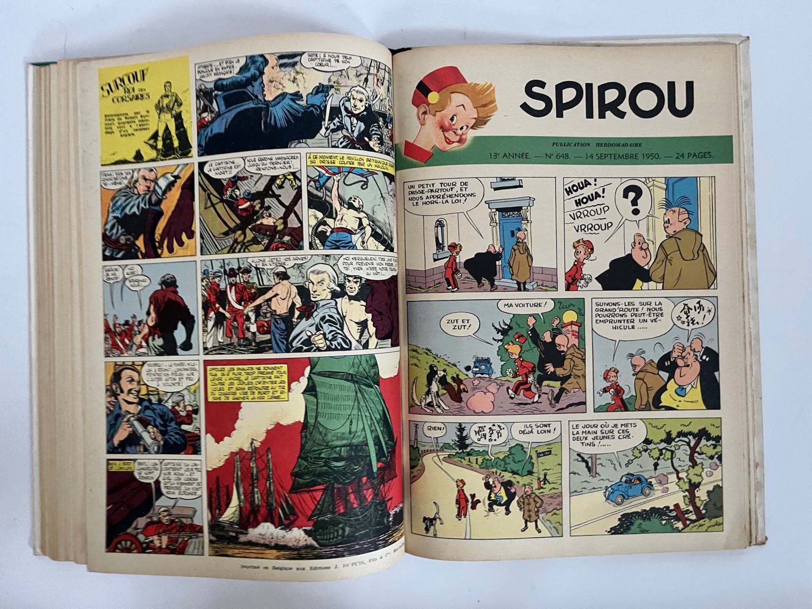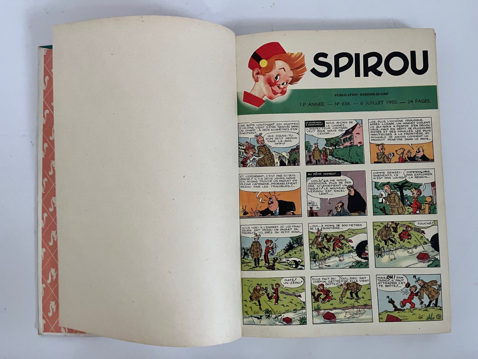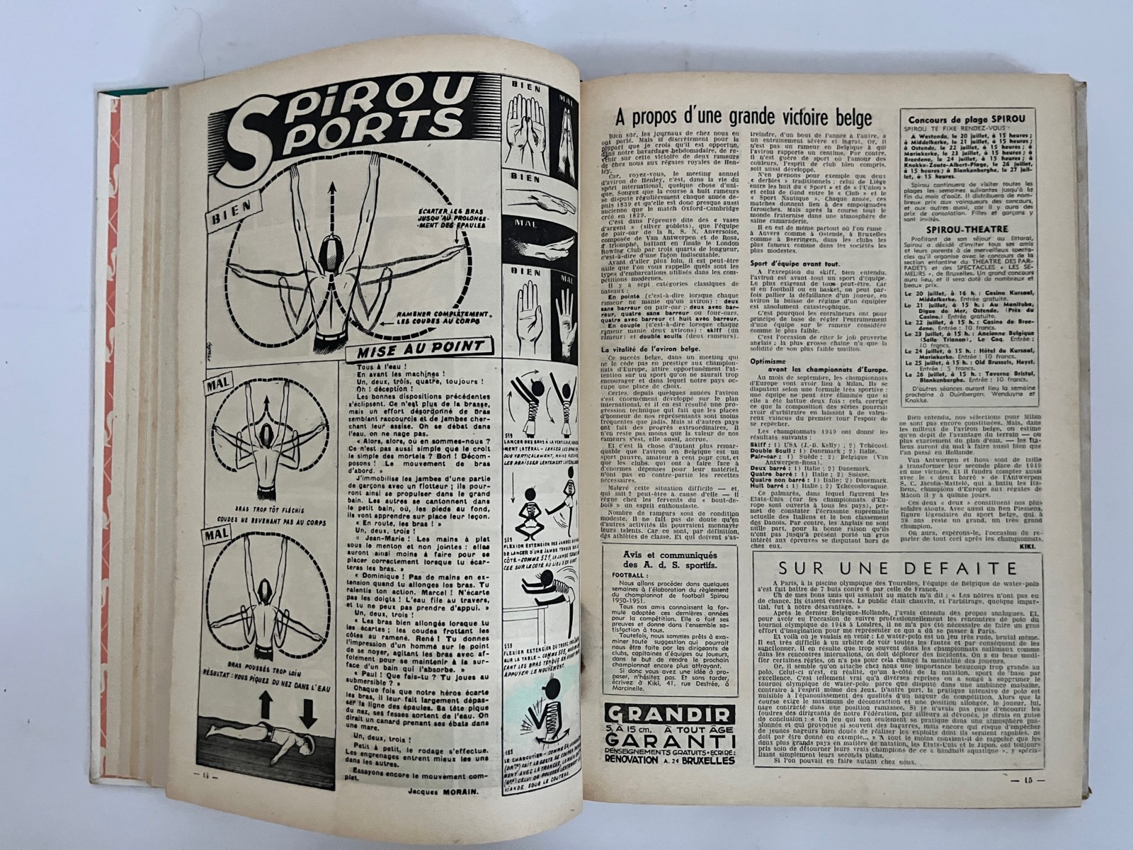 Très très bel état – Plats bien vifs avec légères traces du temps – Dos impeccable d’origine – La colle poisson du dos a classiquement déteint – Coiffes en bon état – Coins encore bien conservés – Tranches quasi non frottées – Intérieur très frais – Cahier intérieur bien homogène – Quelques légères tâches du temps – Coin inférieur des pages du fascicule N°647 (7/09/50) légèrement pliées – Pas d’autres pliures de lecture – Pas d’annotations – Pas de déchirures