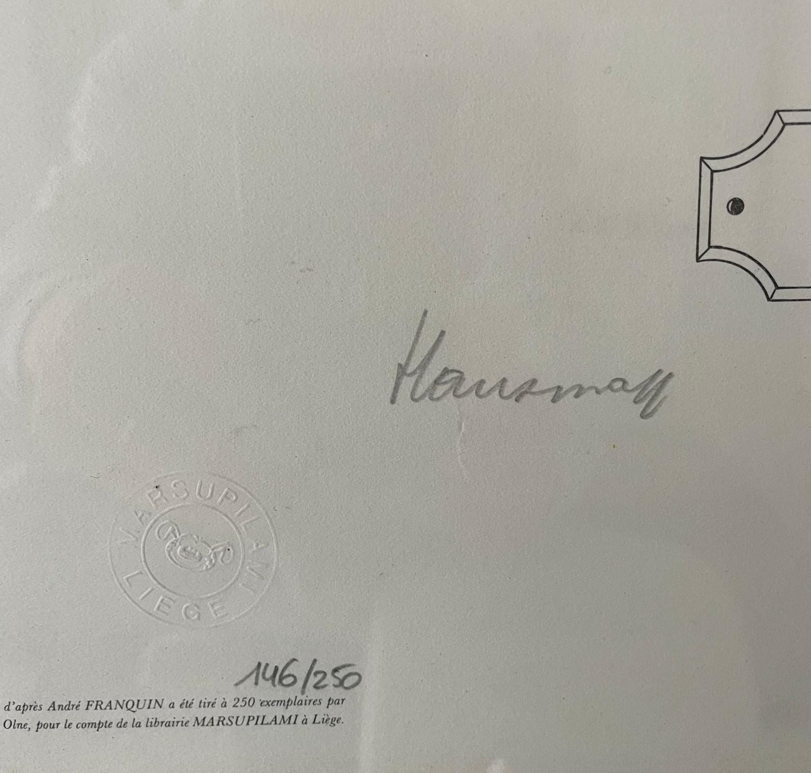 Tirage limité numéroté /250 – Signée par Franquin et René Hausman – Une profonde amitié personnelle et admiration mutuelle liait les 2 artistes
