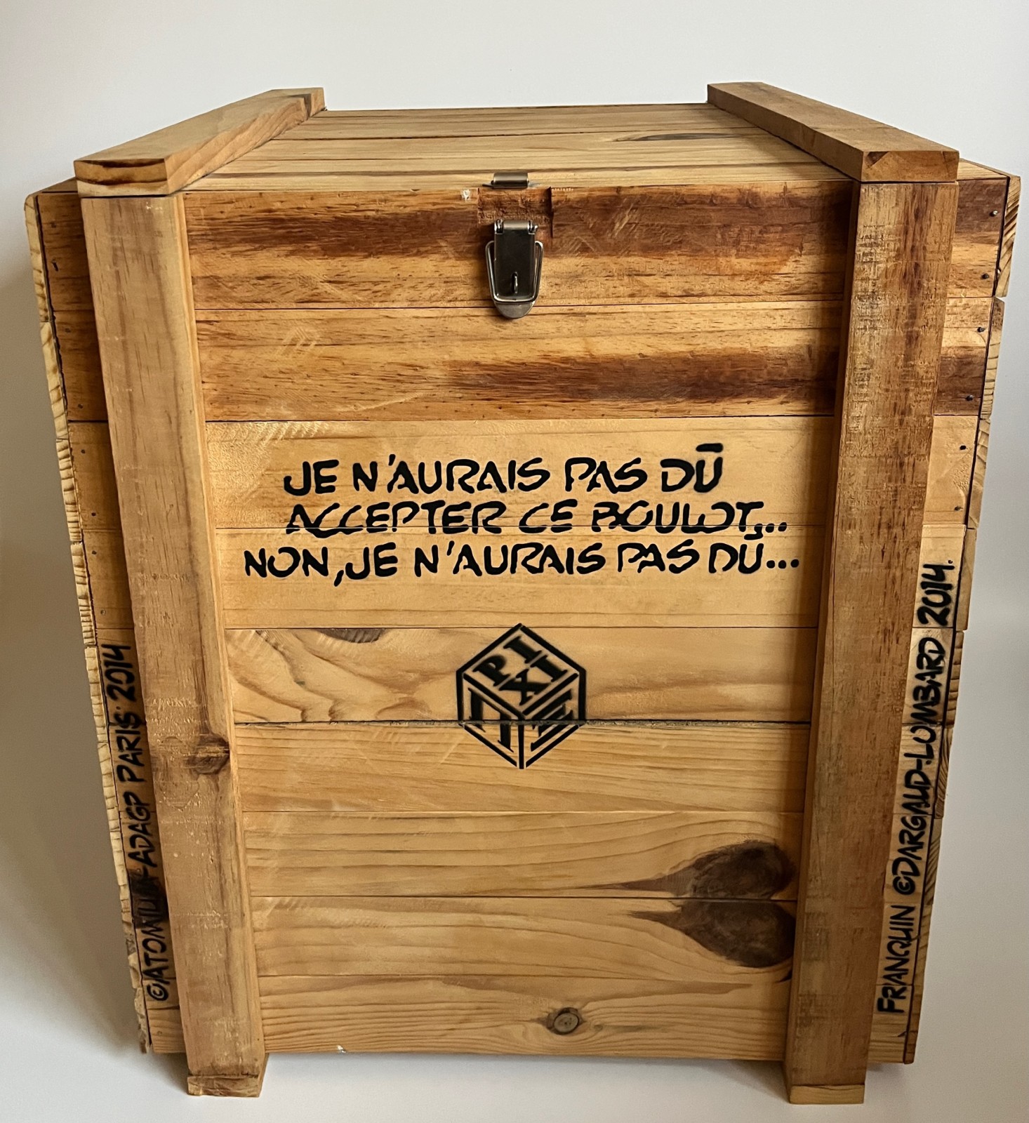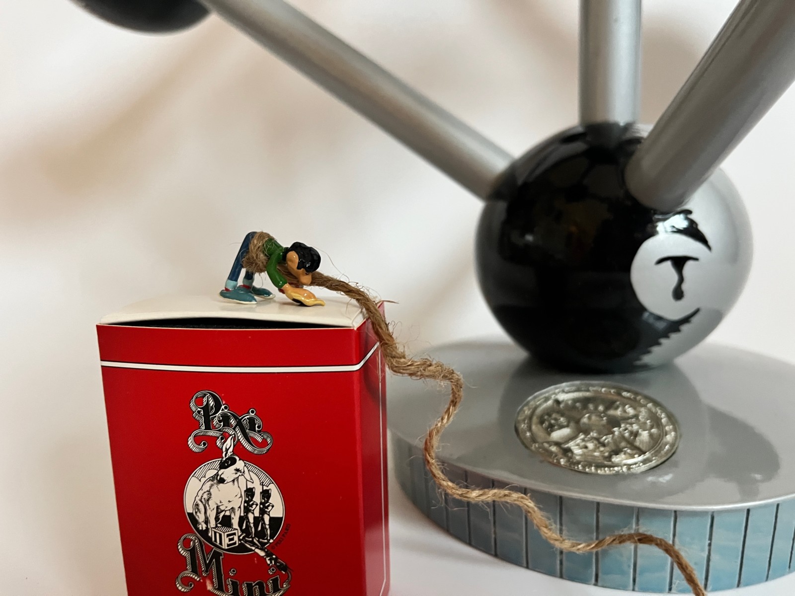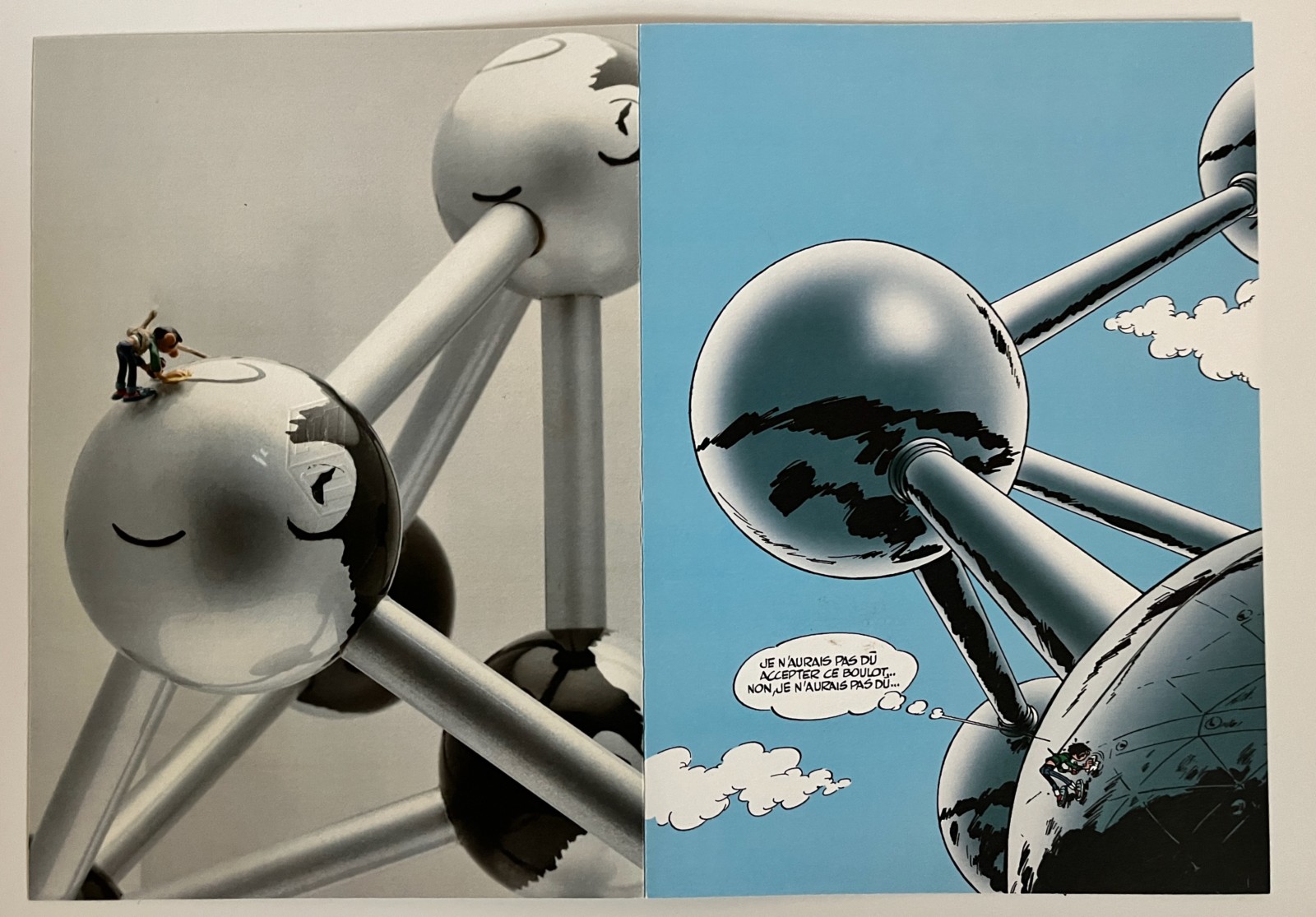L’atomium est présentée dans sa caisse d’origine en bois sérigraphiée – La figurine de Gaston est avec sa boite Pixi