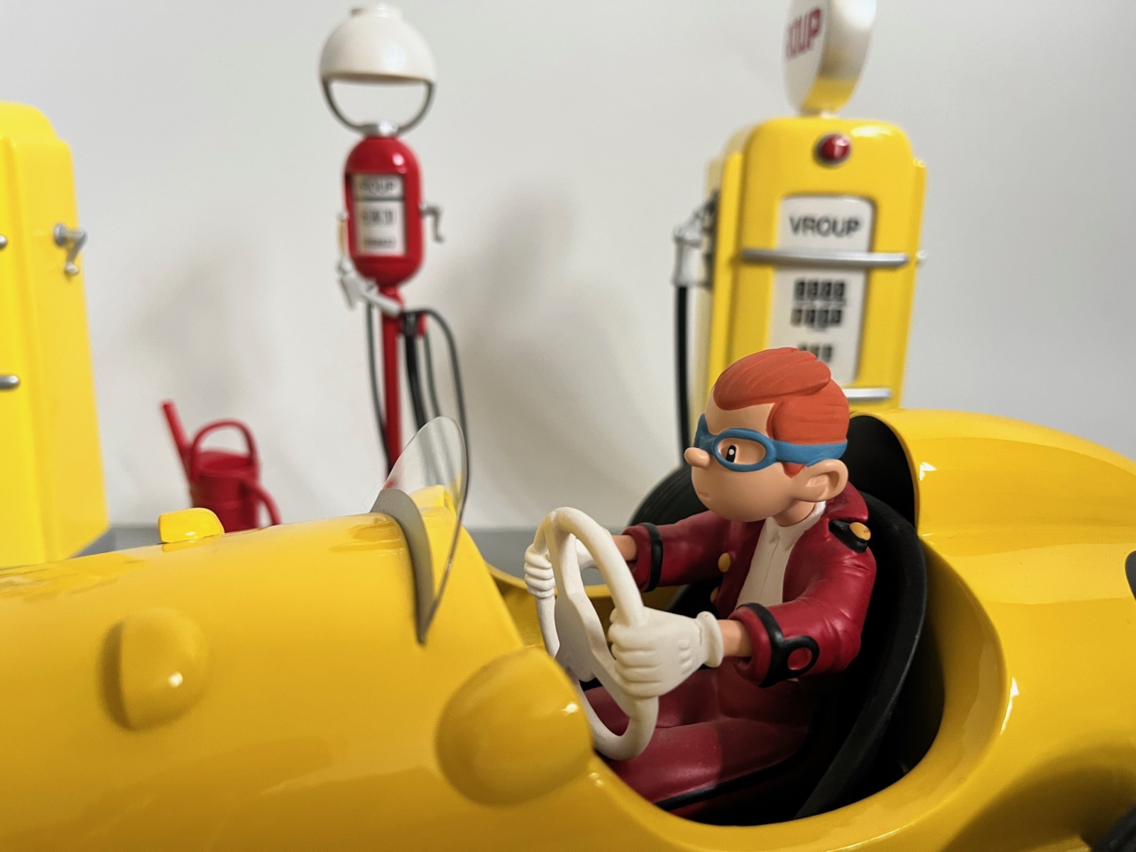 -Spirou dans sa Turbot jaune – Signé par Michel Aroutcheff sous le véhicule – Dans sa boite d’origine – Sans son certificat – Tirage limité numéroté sous le véhicule à /999 exemplaires (au final seuls environ 250 exemplaires ont vu le jour) – Etat impeccable – Michel Aroutcheff – (1998)