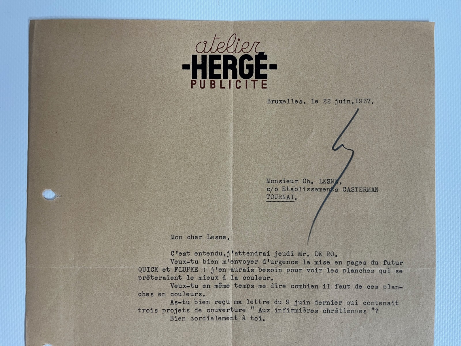 Hergé – Atelier Hergé Publicité – Lettre d’époque signée par Georges Remi – 1937