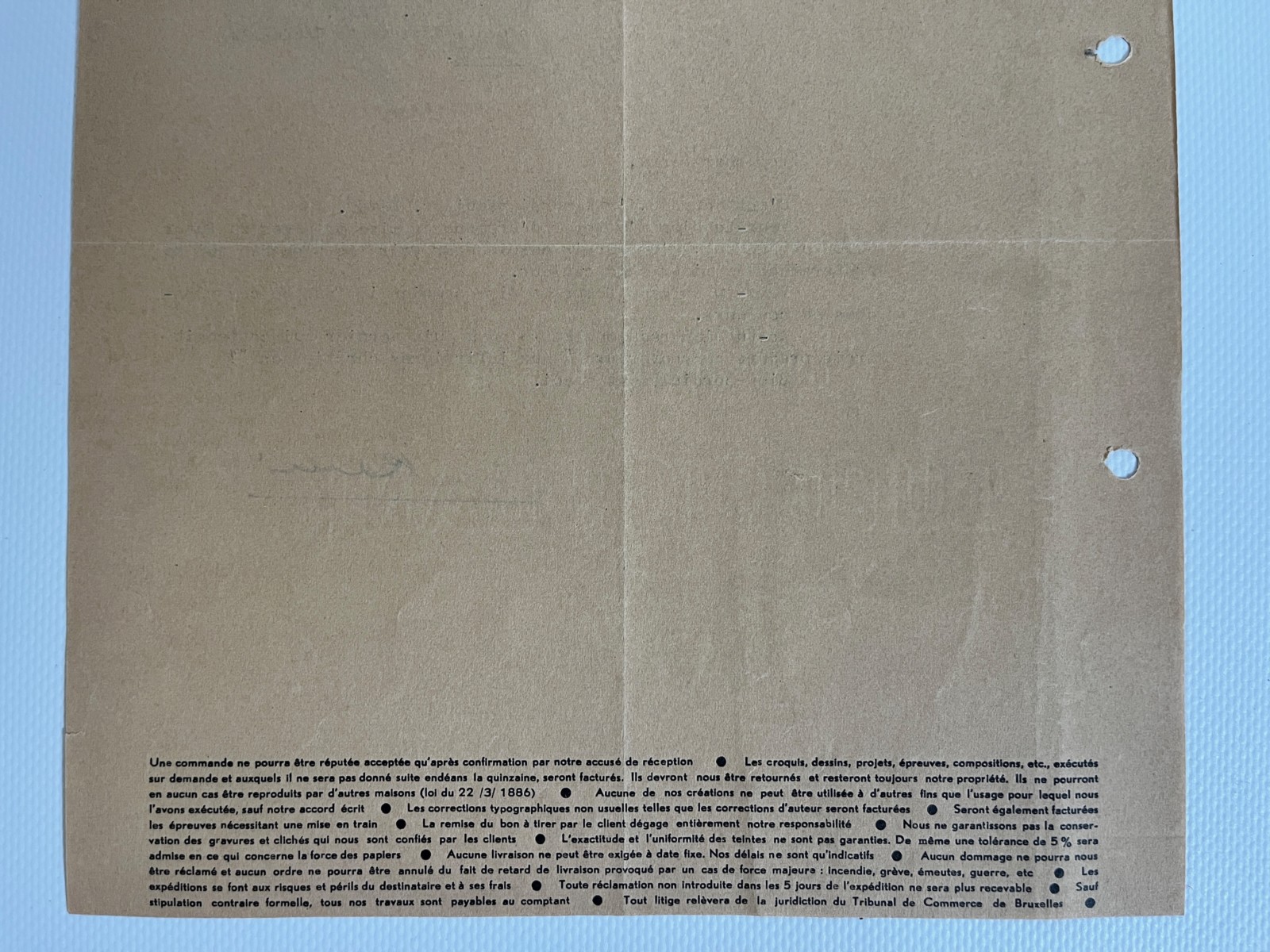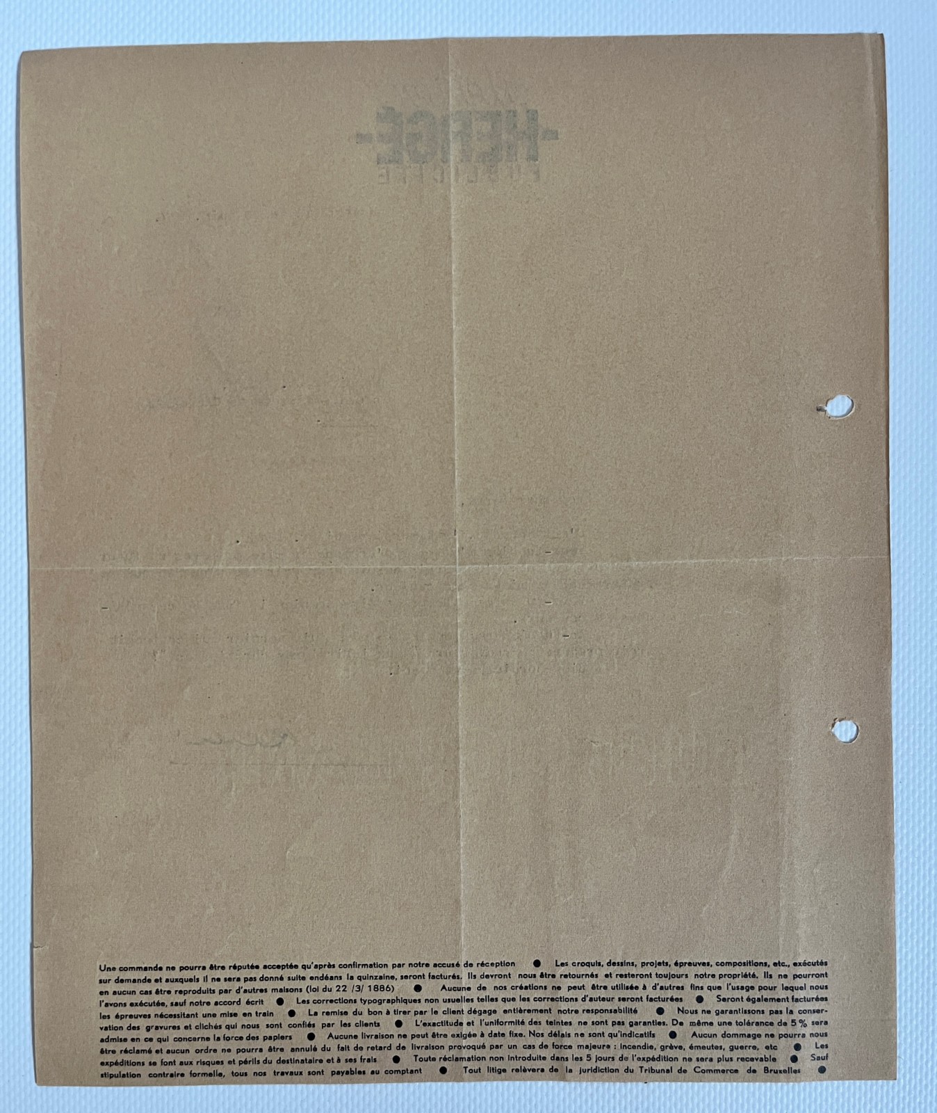 Rare document avec l’en-tête de Atelier Hergé Publicité