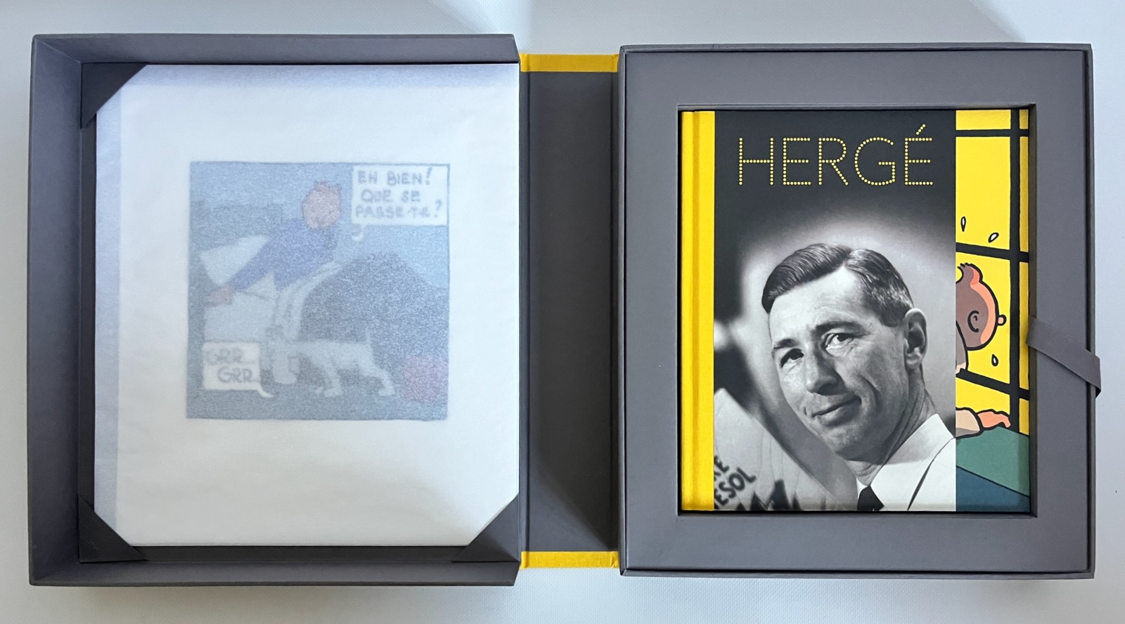 Coffret avec le catalogue de l’exposition de papier, Hergé au Grand Palais, Paris en 2017