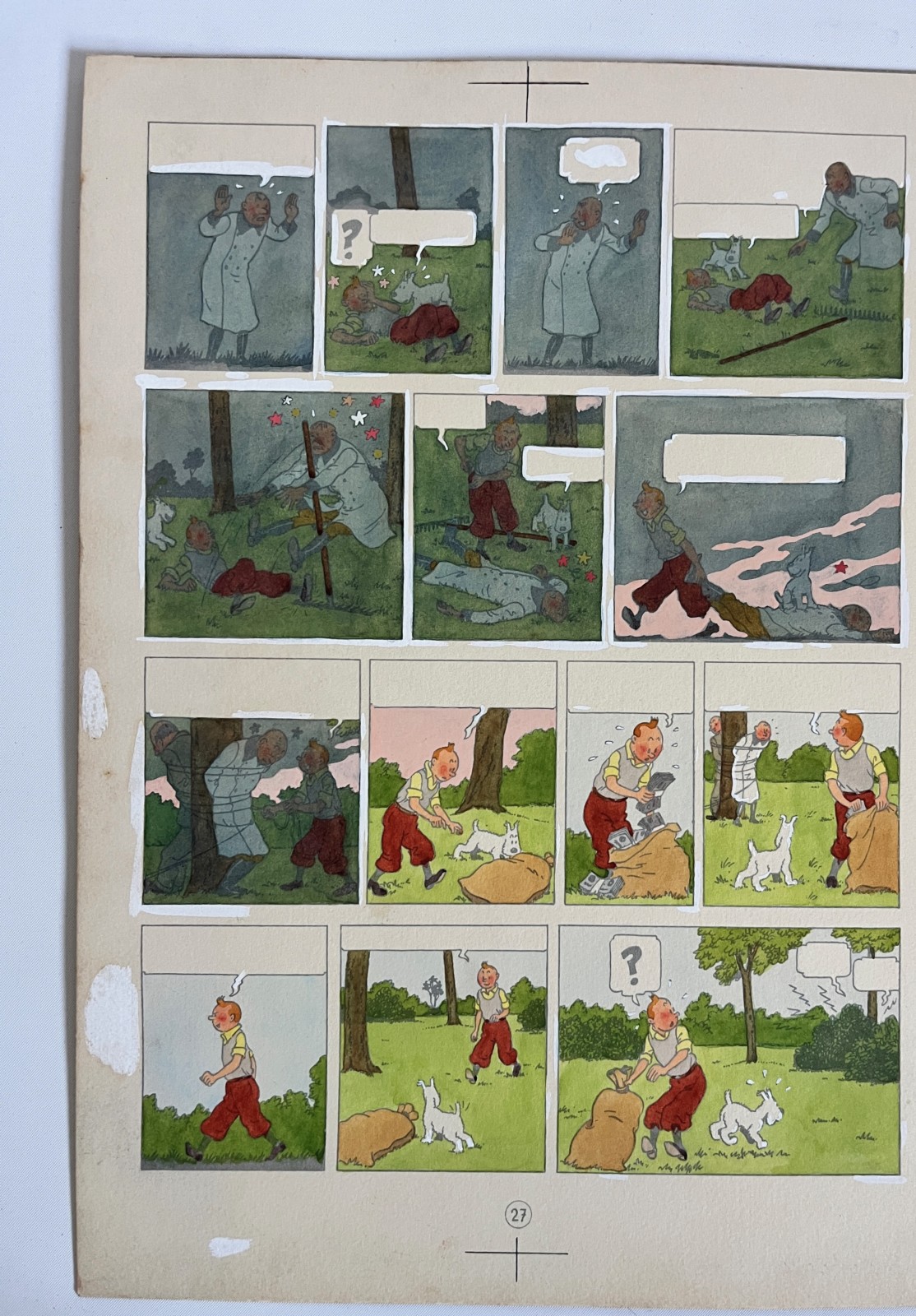 Hergé et Studios Hergé – Coloriage original – Première édition couleur – L’Ile Noire – (1943)