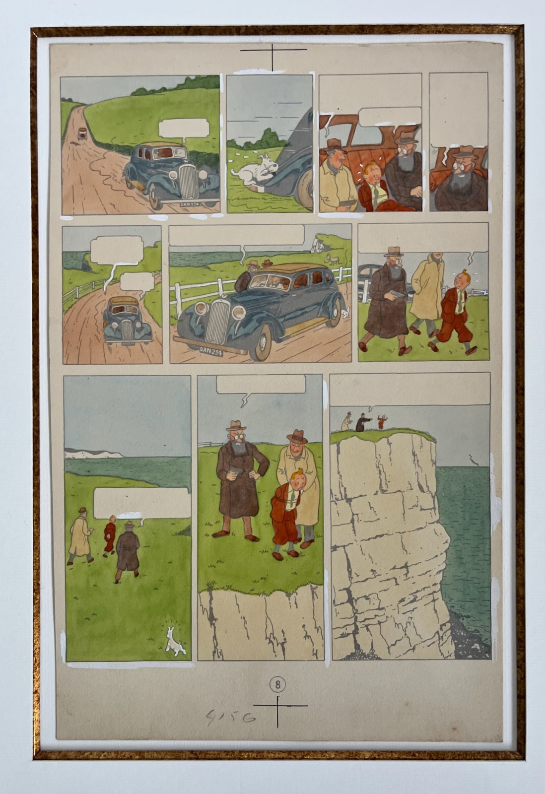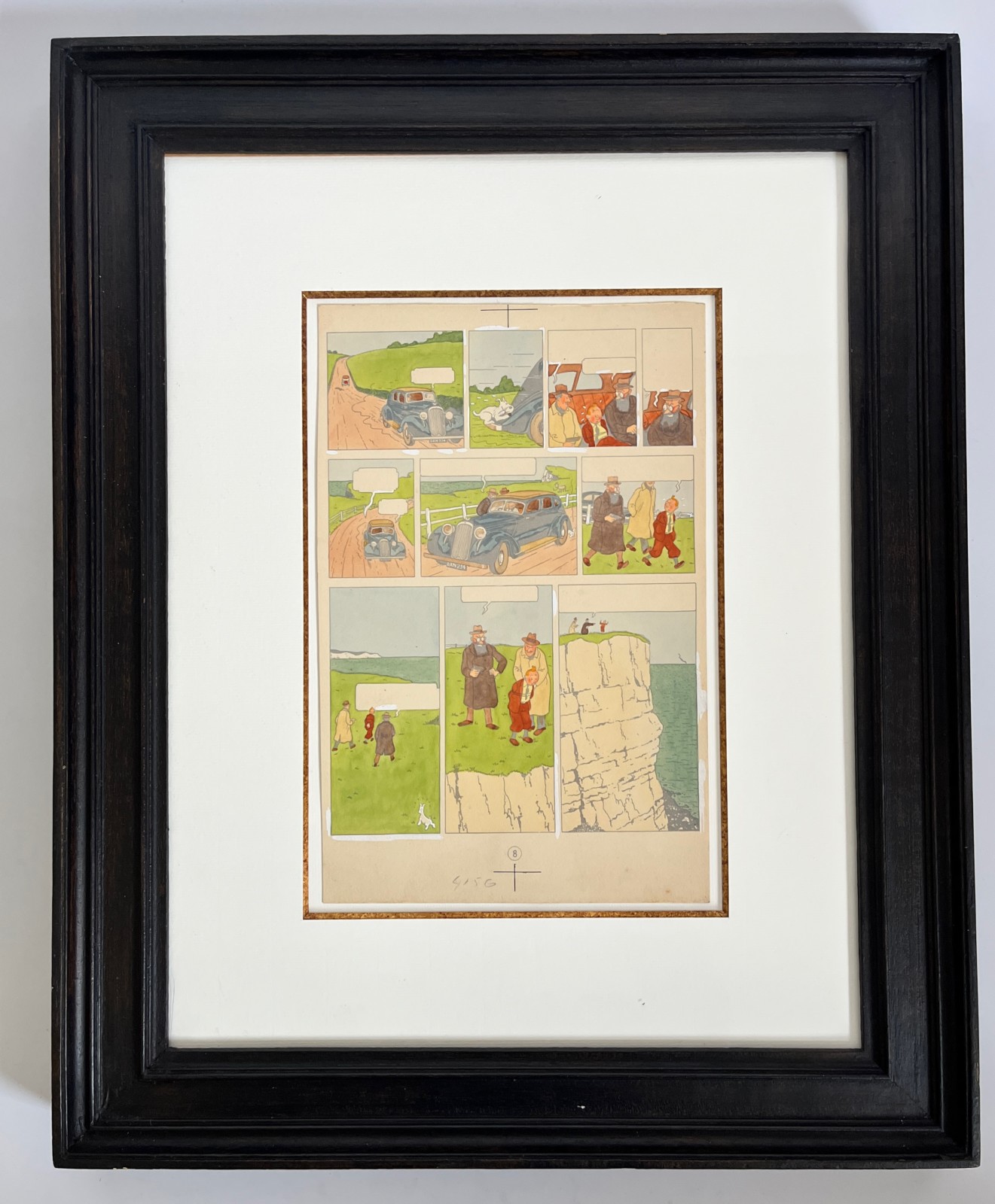 Coloriage original de la page 8 de la première édition couleur de l’album Tintin L’Ile Noire de 1943