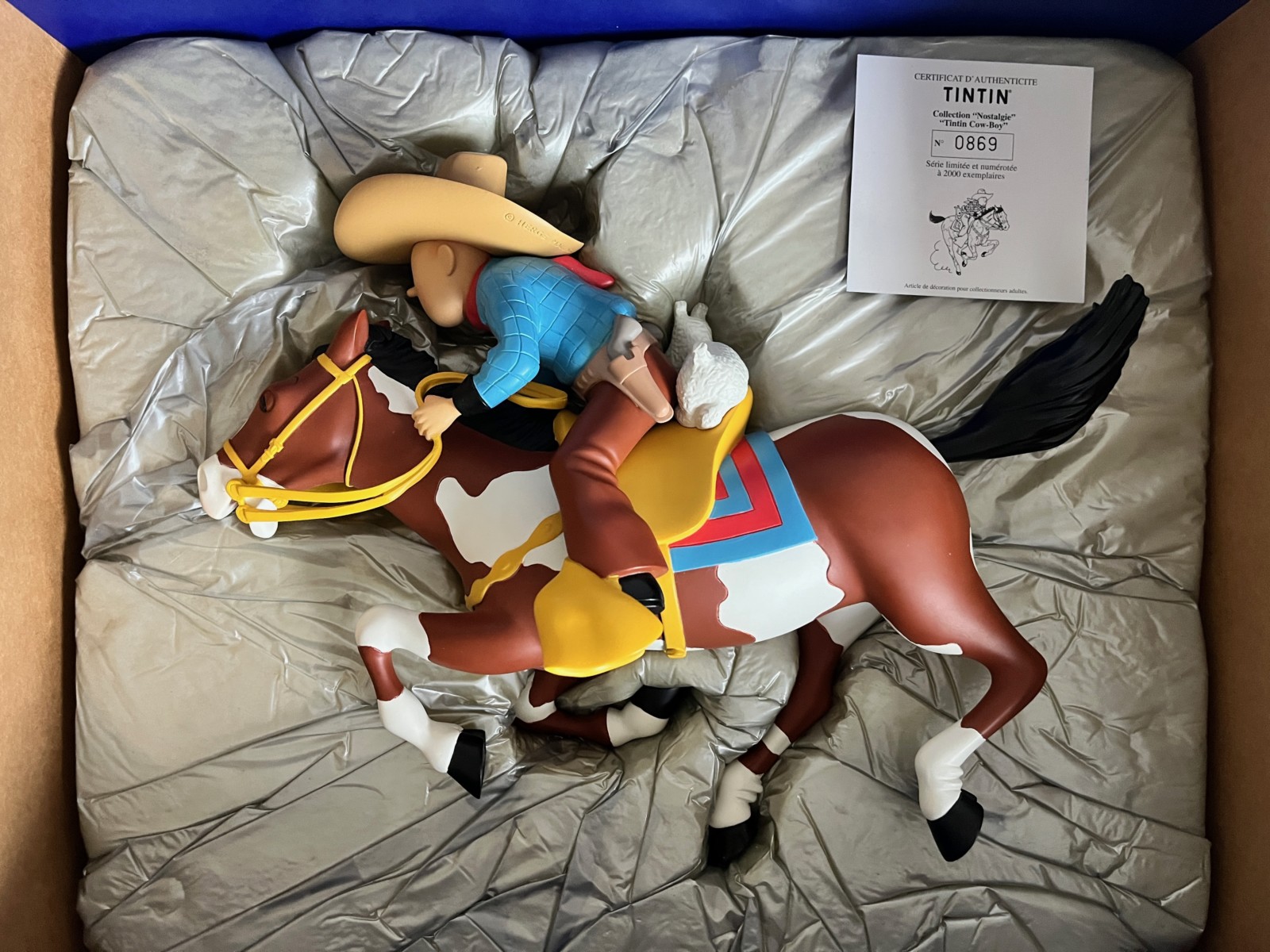 Hergé – Figurine Tintin Cowboy à cheval – ref. 45942 – Collection Nostalgie – Leblon Delienne – 2005