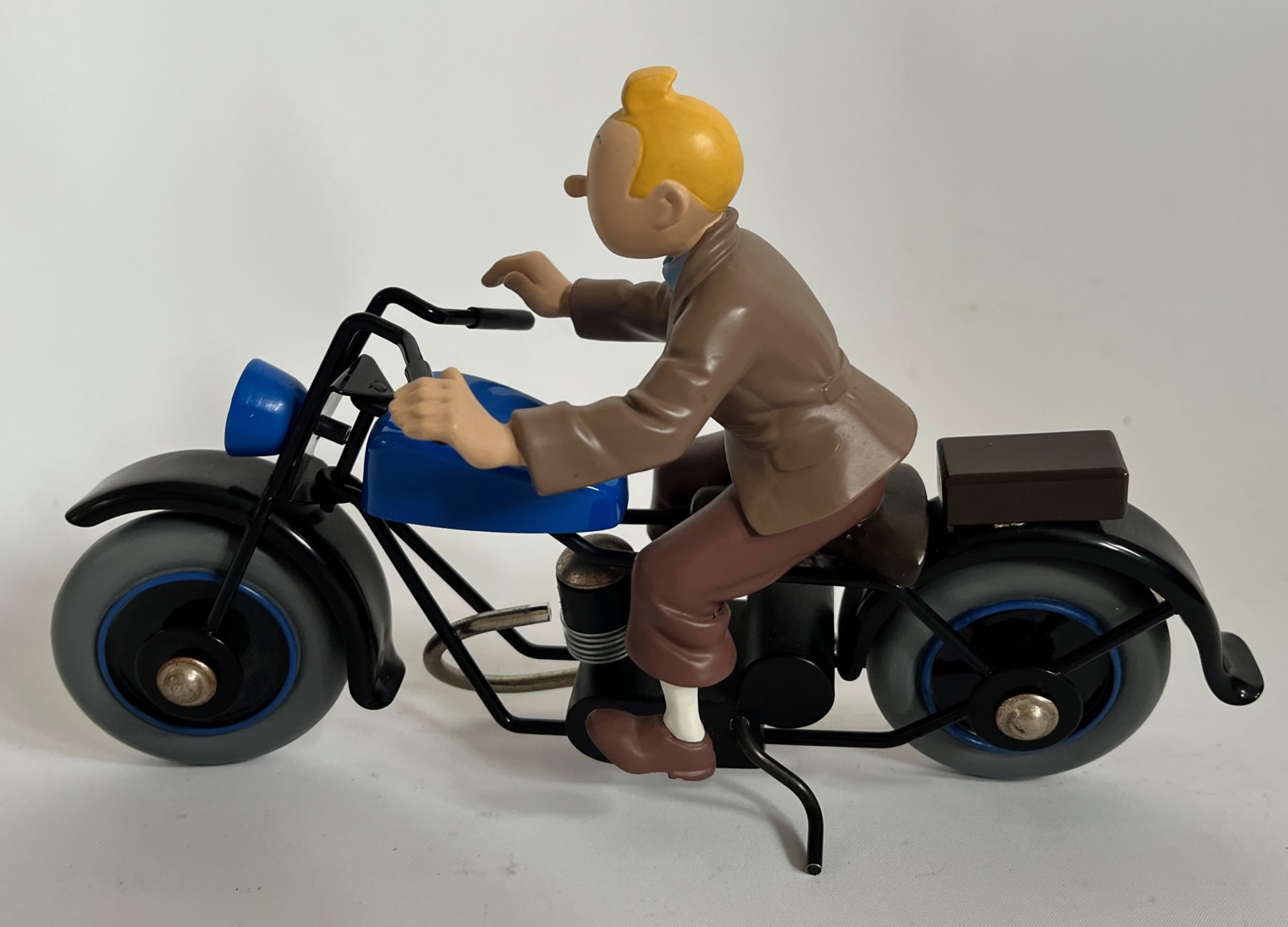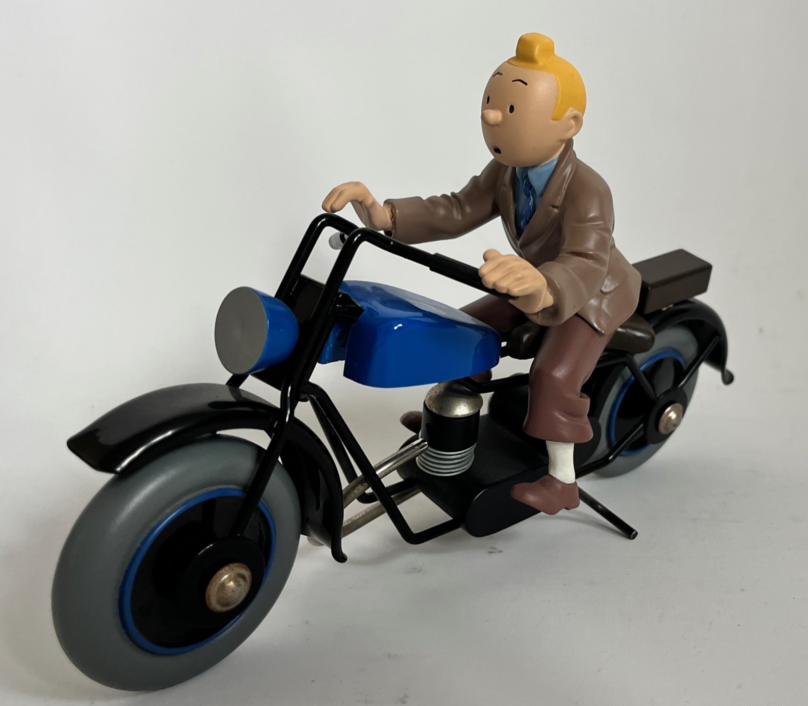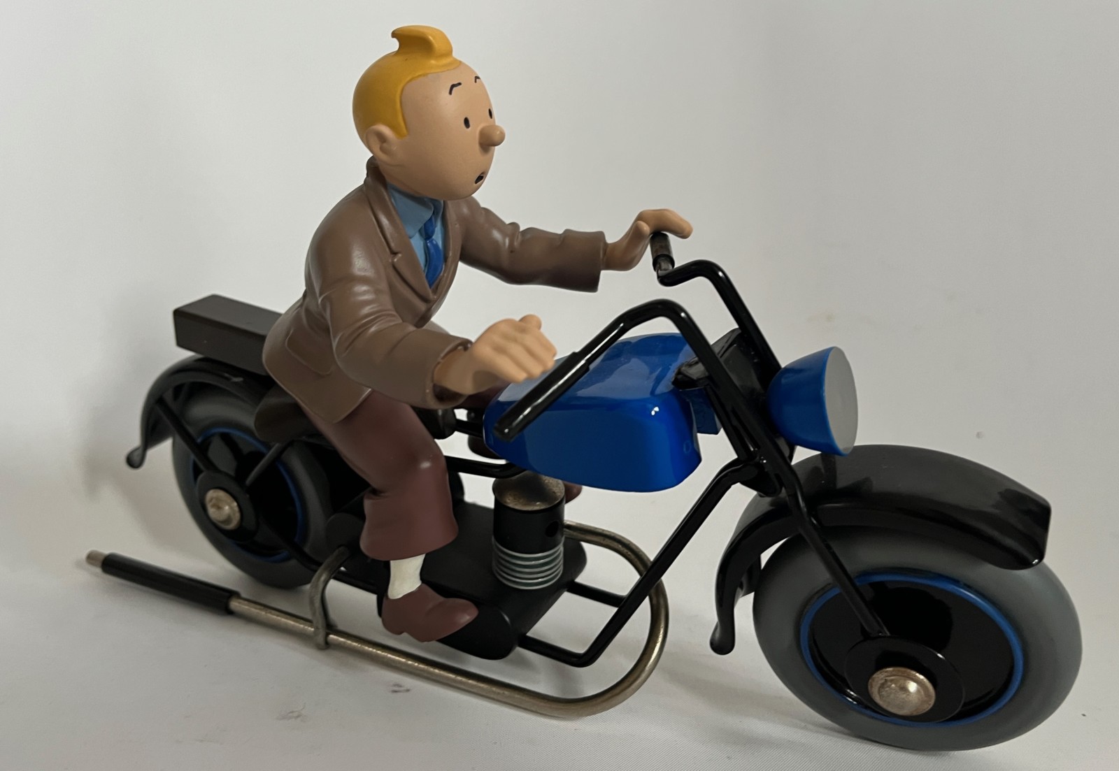 Hergé – Figurine Tintin sur la moto – Première version moto bleue – ref. H23 – Michel Aroutcheff – 1996