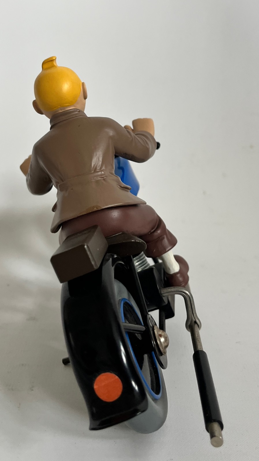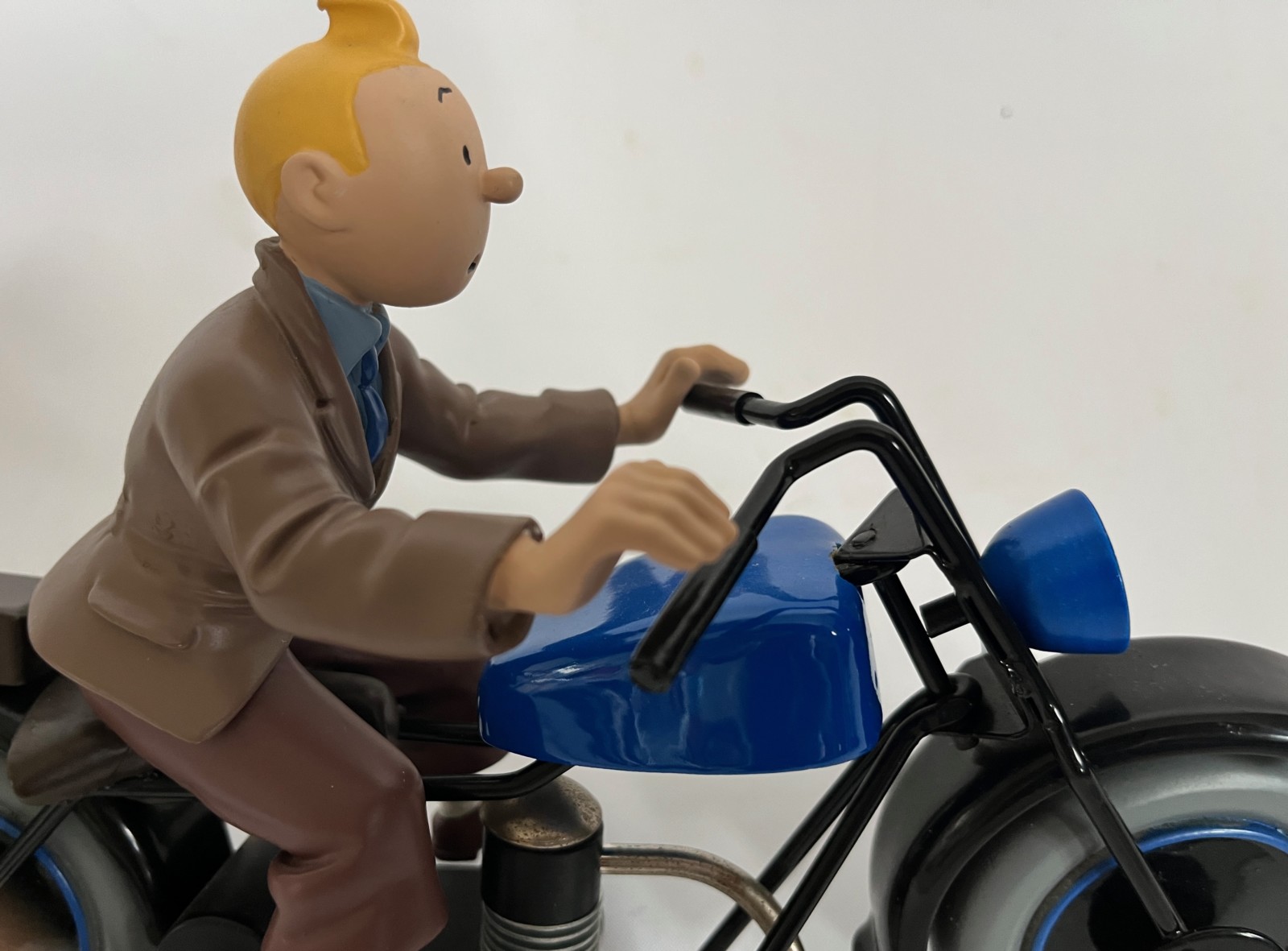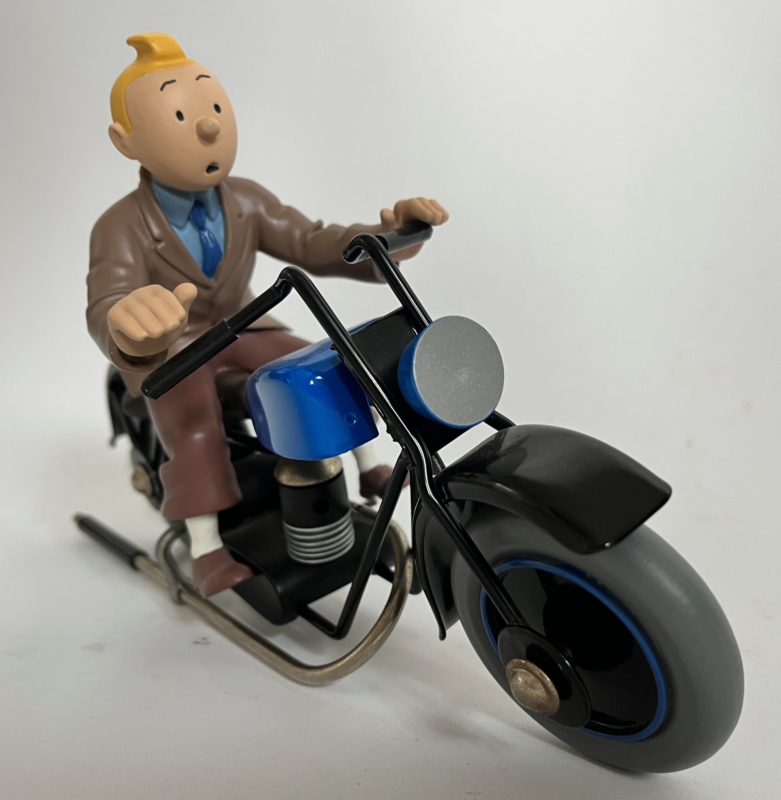 Hergé – Figurine Tintin sur la moto – Première version moto bleue – ref. H23 – Michel Aroutcheff – 1996