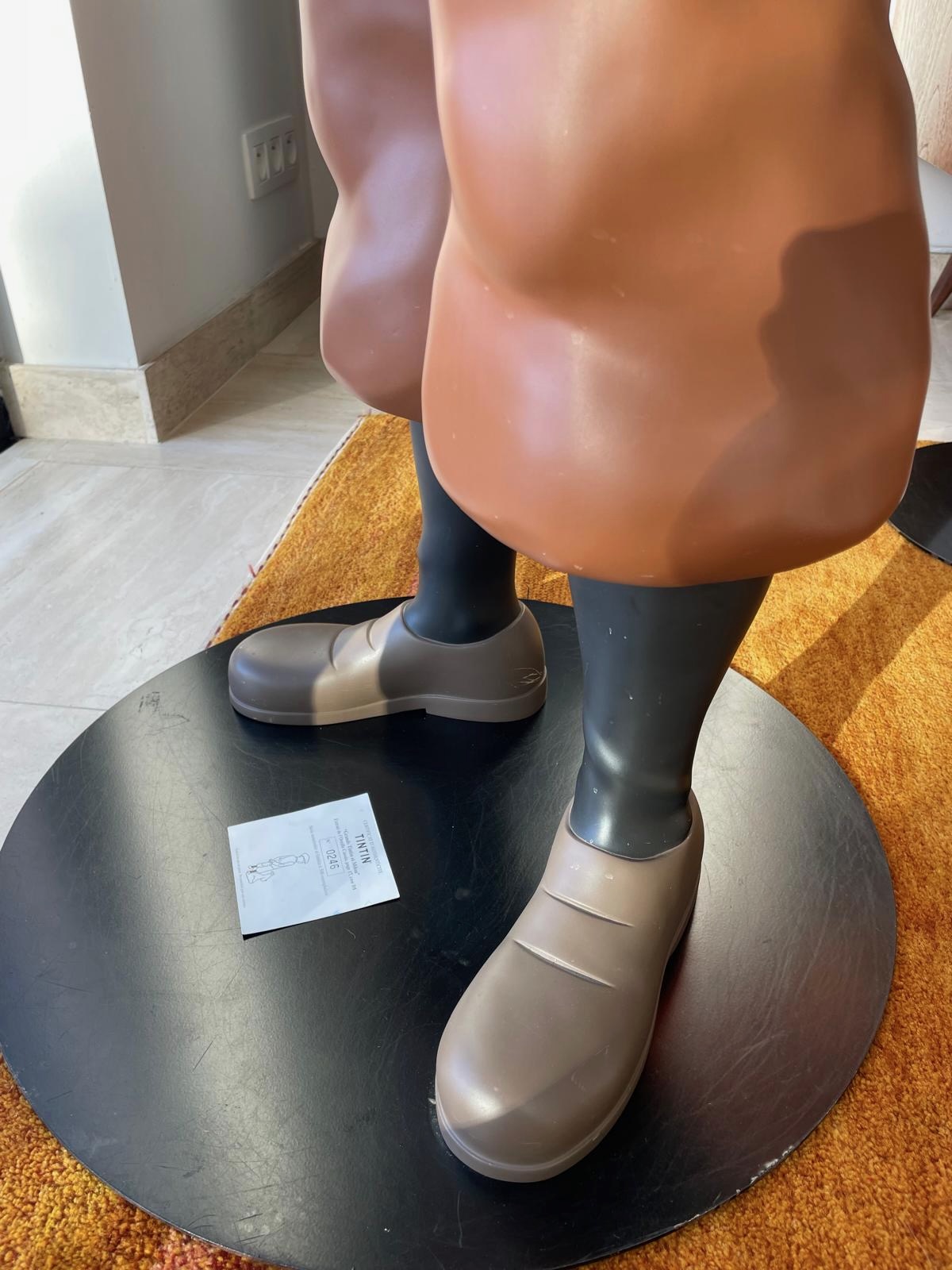 Pièce d’occasion en très bel état général – Petites traces à l’arrière d’une des chaussures de Tintin – Légers frottements sur le dessus de la casquette et traces à l’emplacement des pieds de Tintin sur le socle (non visibles une fois la figurine insérée)