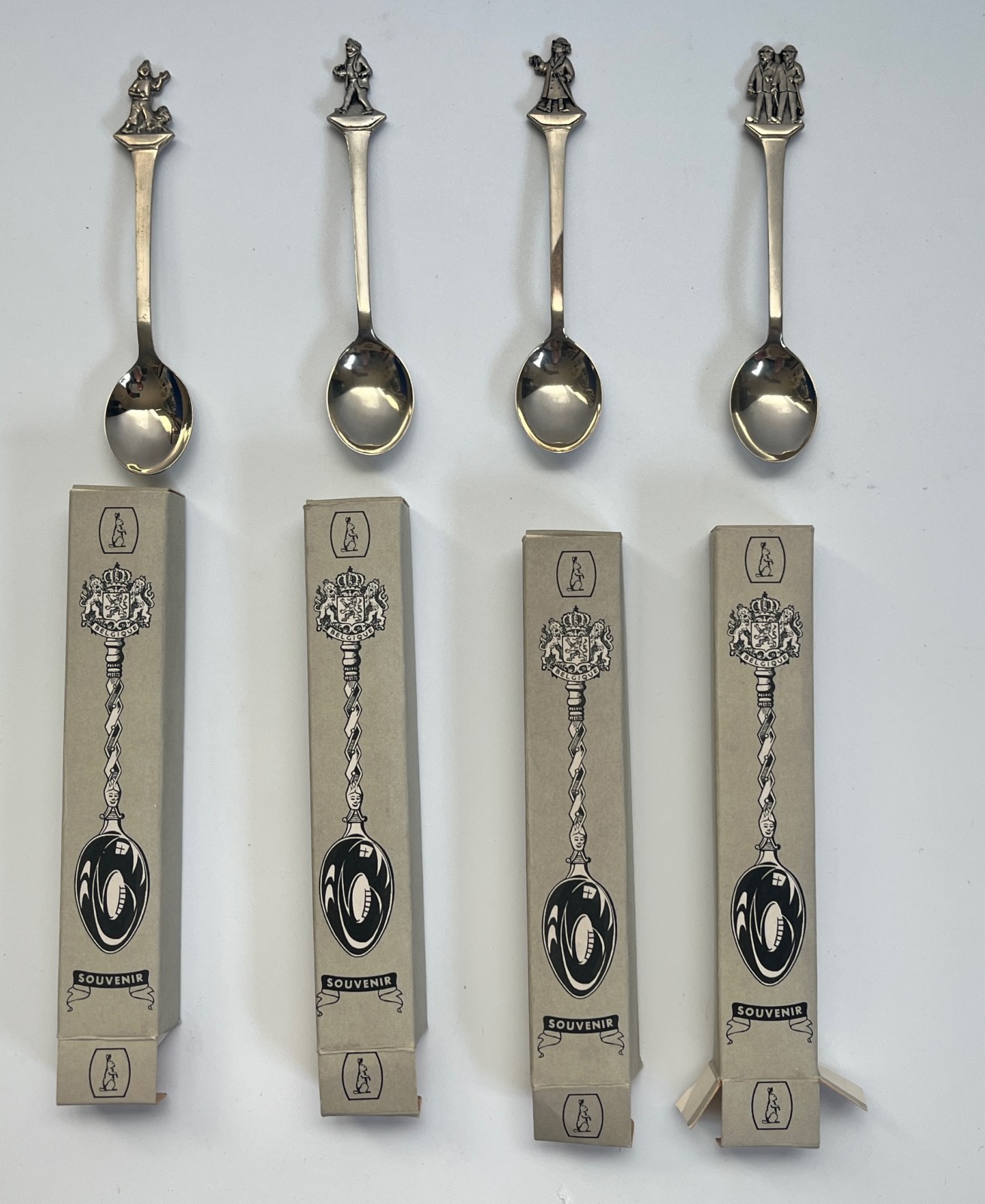 Hergé – Les Aventures de Tintin – Ensemble de 4 cuillères à l’effigie des personnages de Tintin – Belgique – Années 60