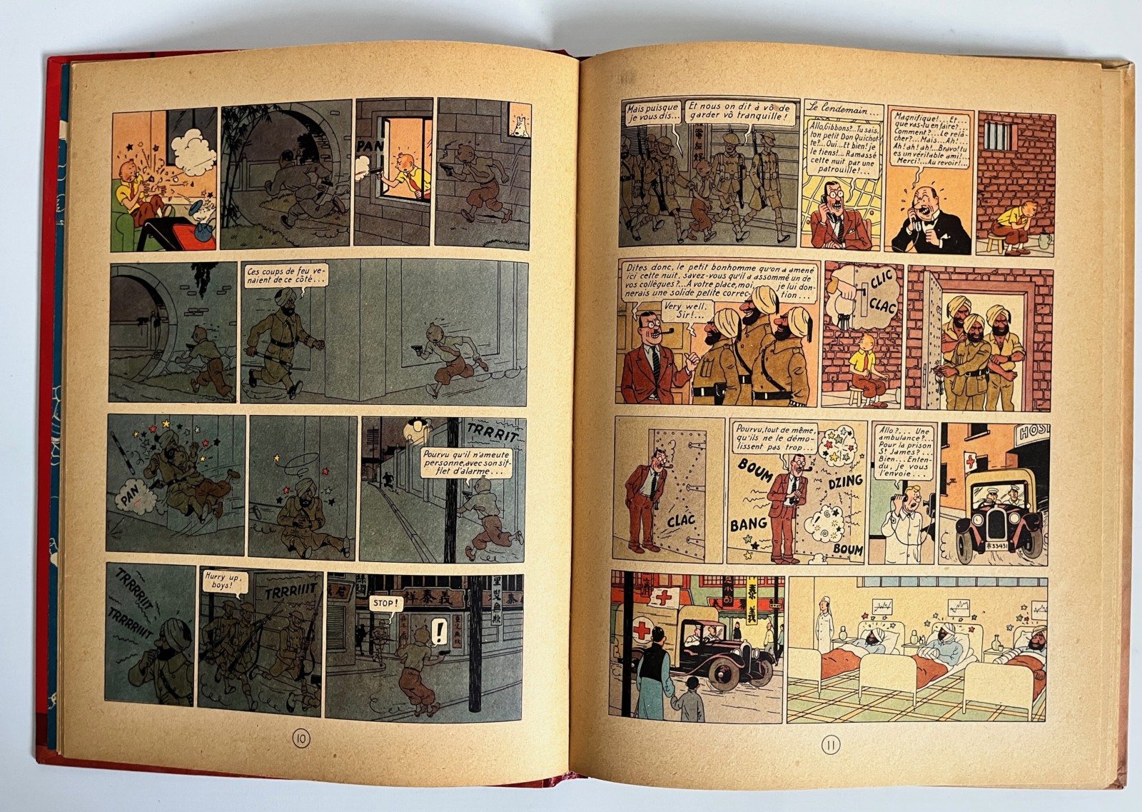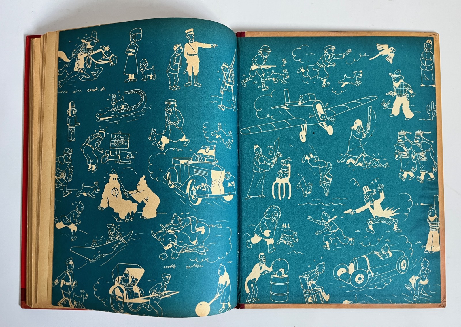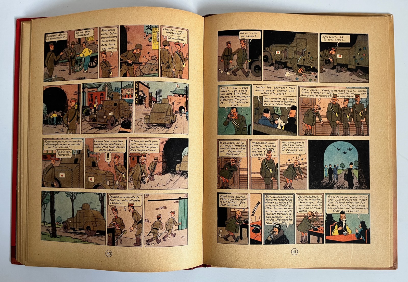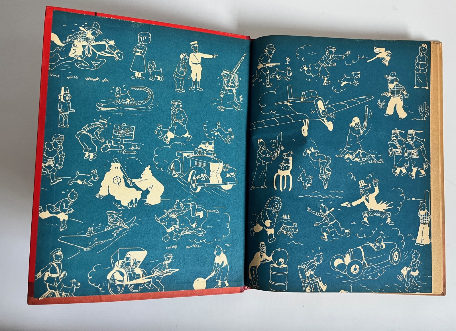 Edition originale couleurs – 2e plat B1 – Pull du Capitaine en 2 couleurs – Dos rouge – Texte en bleu en page de titre – Impression sur gros papier jauni