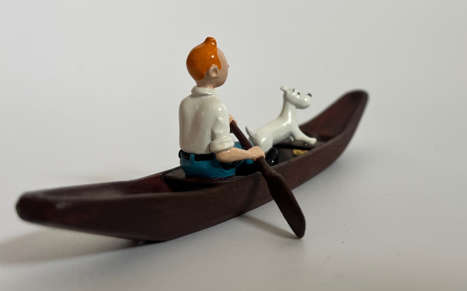 Tintin série N°3 – L’oreille cassée – Tintin, Milou et la pirogue – Plomb peint à la main