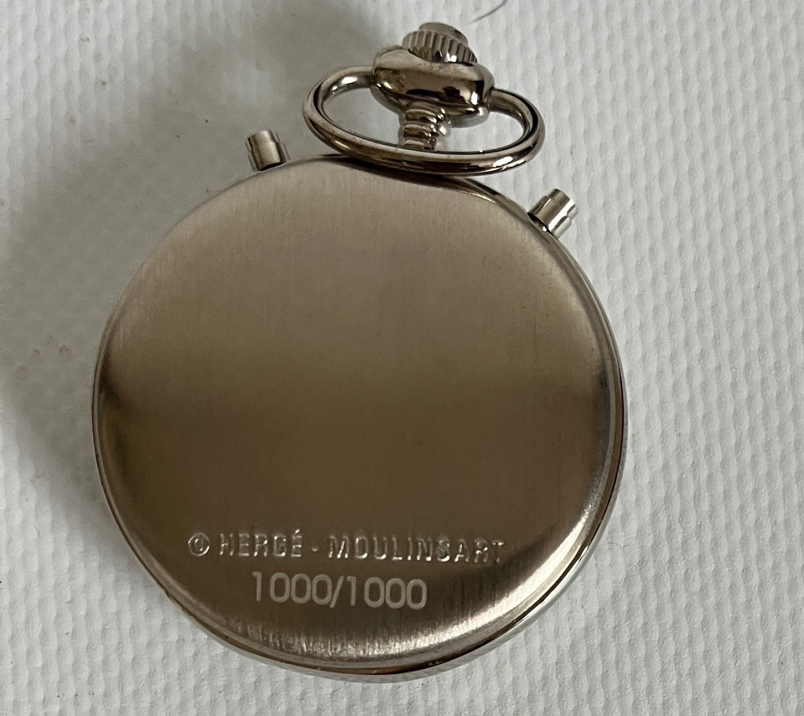 Hergé – Montre Tintin – Tintin en imperméable et Milou – Gousset – Tirage limité numéroté – Moulinsart – 2008