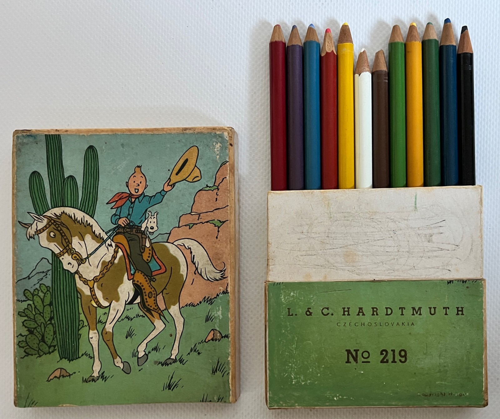 Les crayons sont proposés dans leur boite d’origine en carton, ©Hergé – L&C Hardmuth n°219 – Czechoslovakia