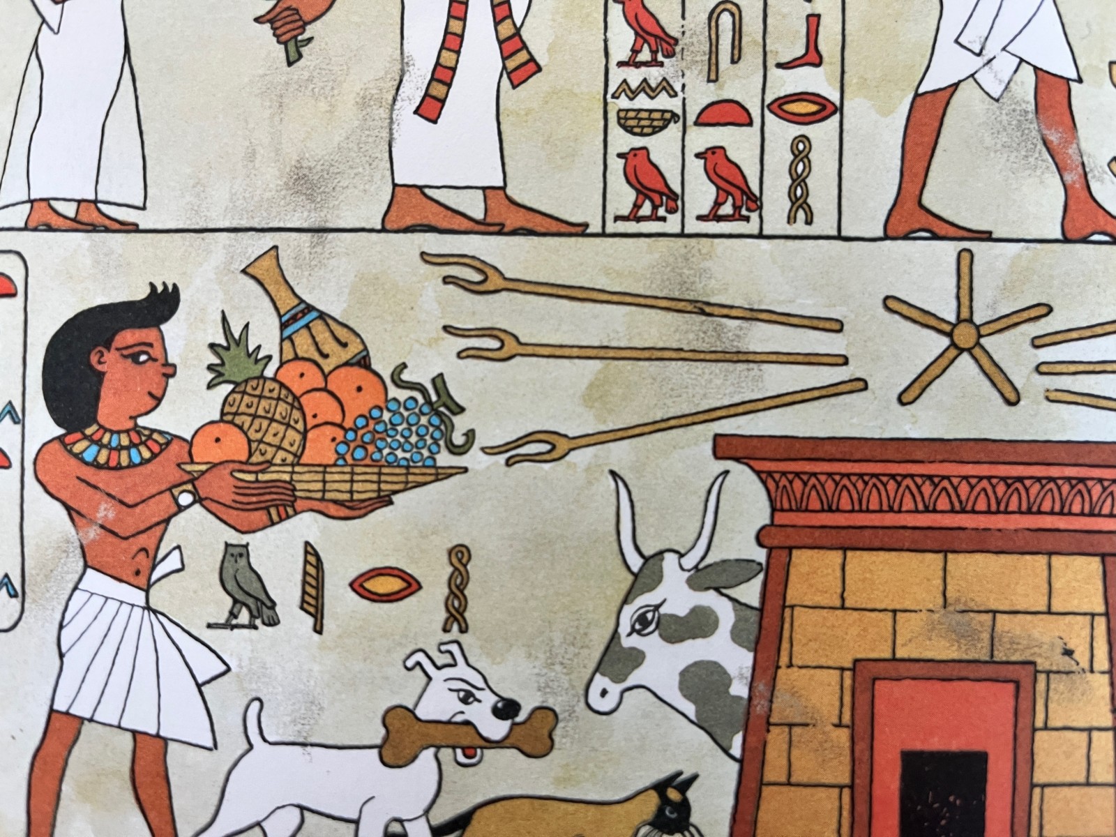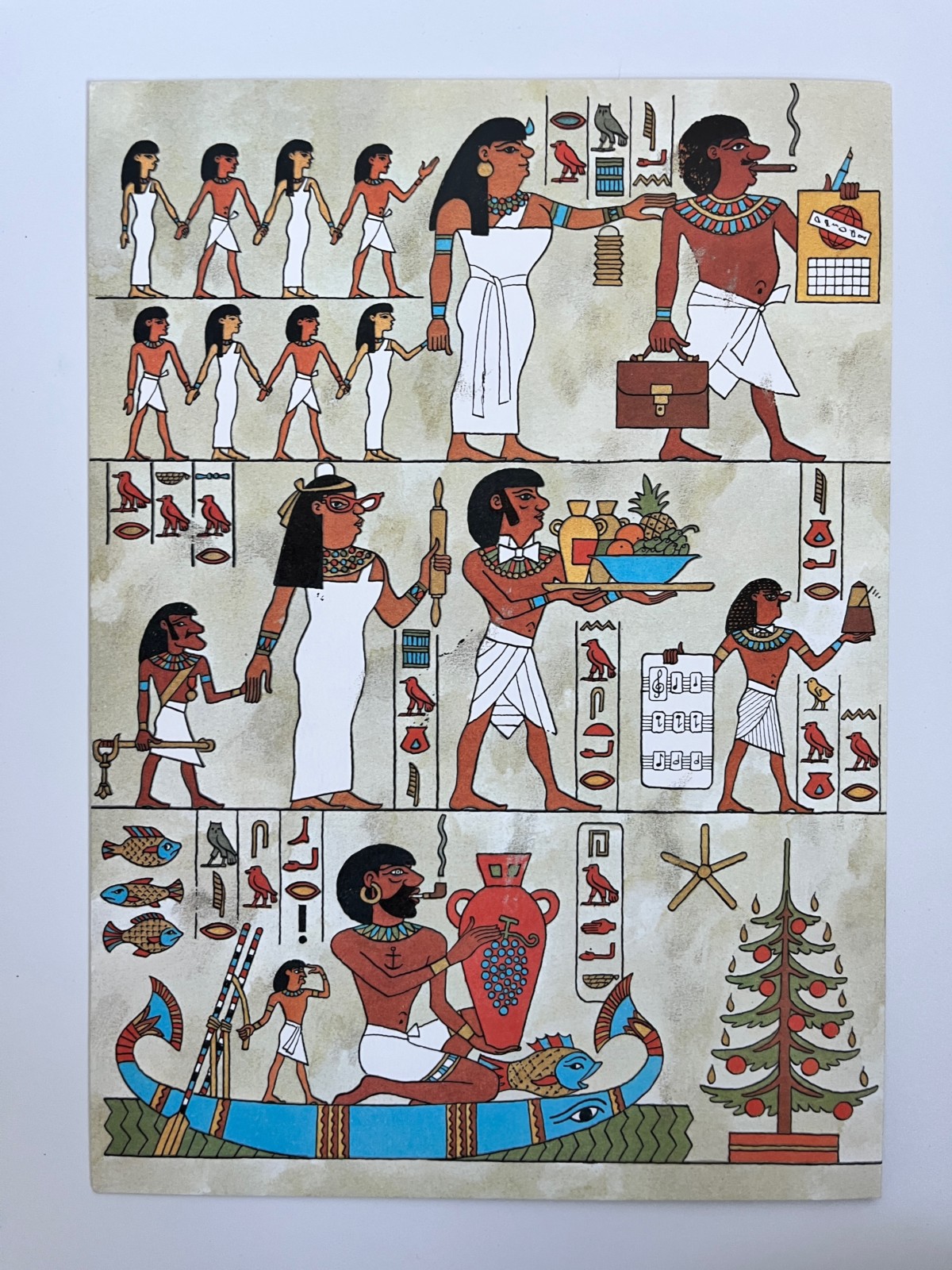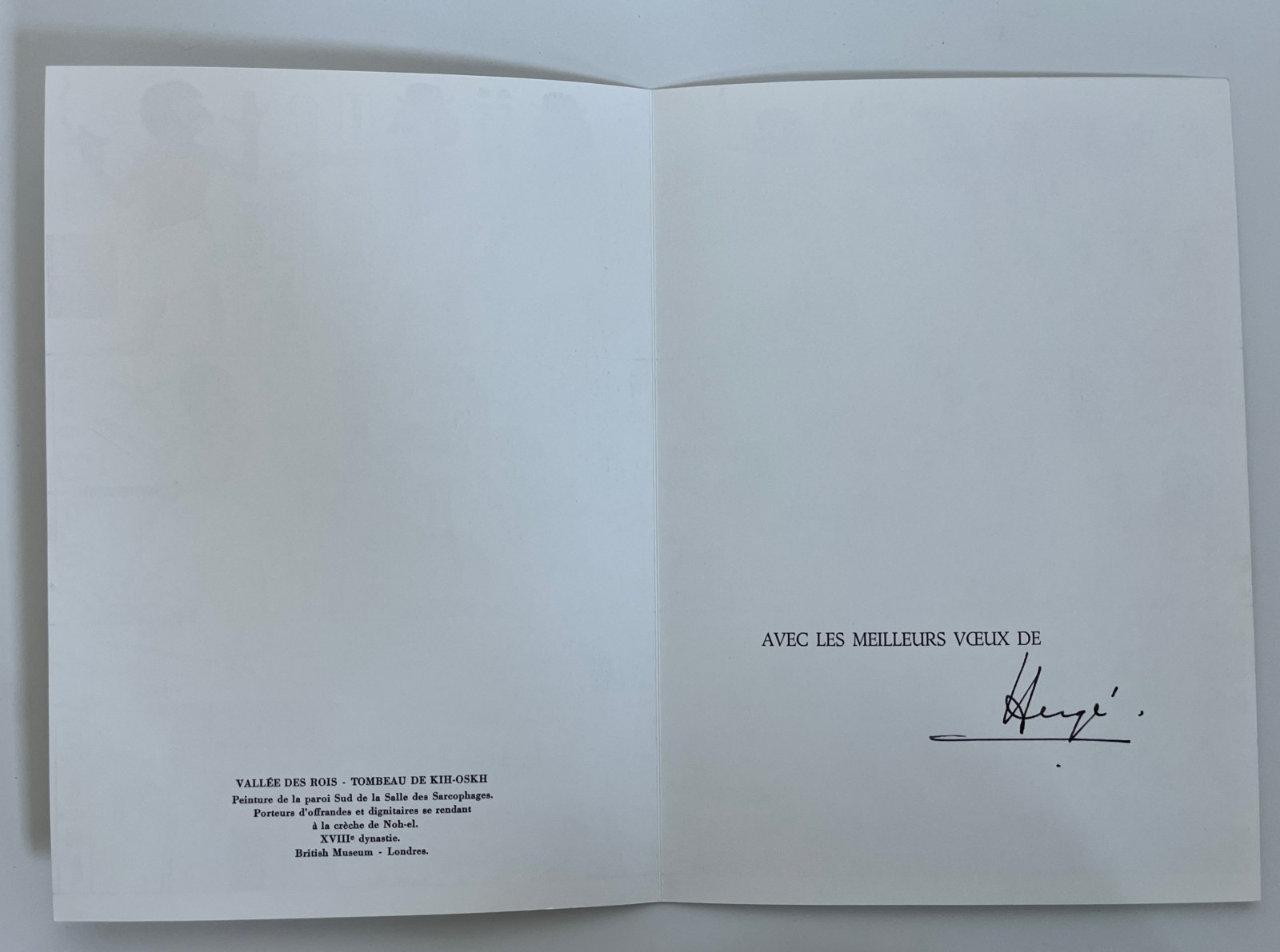 Hergé – Tintin – Carte de voeux – Fresque Egyptienne – Signée par Hergé – 1979