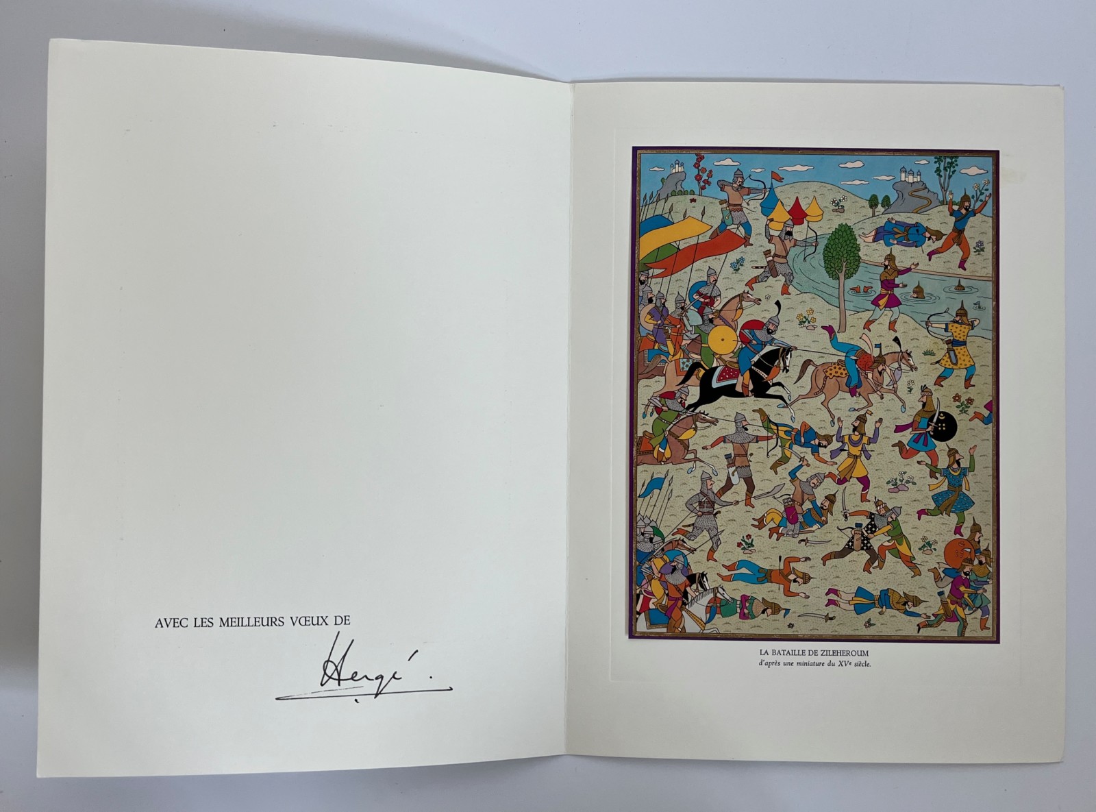 Hergé – Tintin – Carte de voeux – La bataille de Zileheroum – Signée par Hergé – 1977