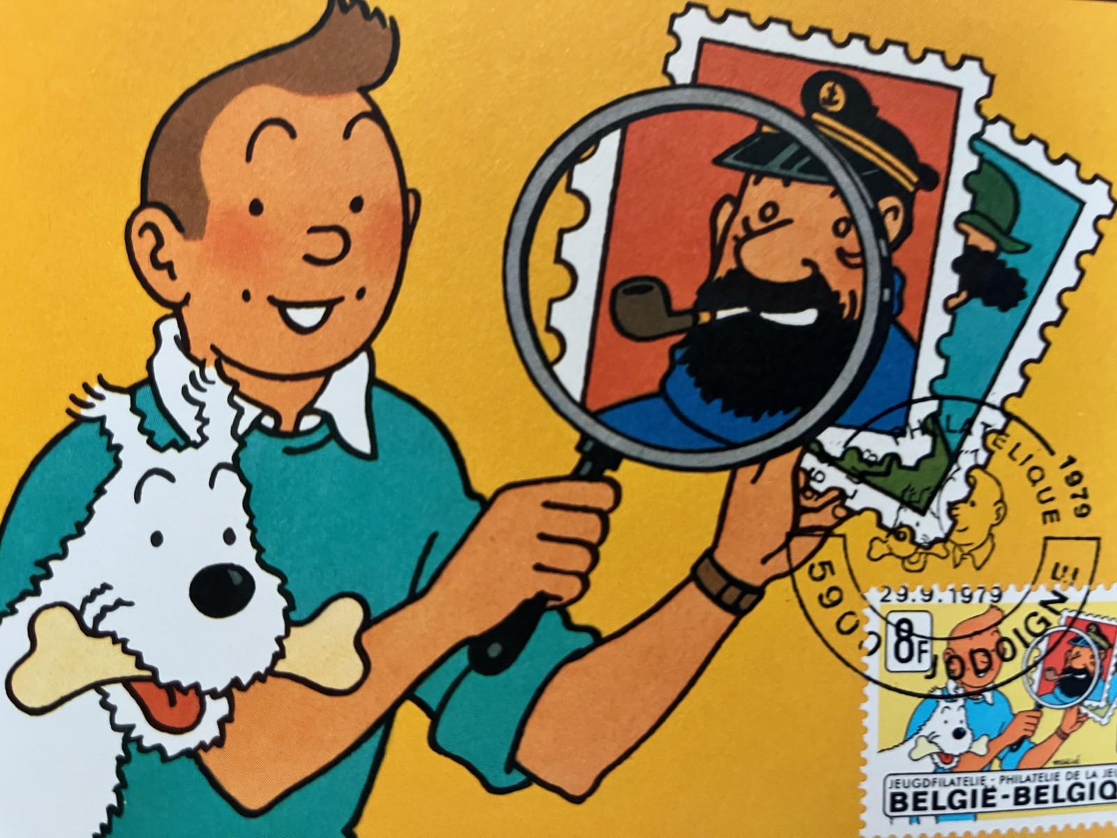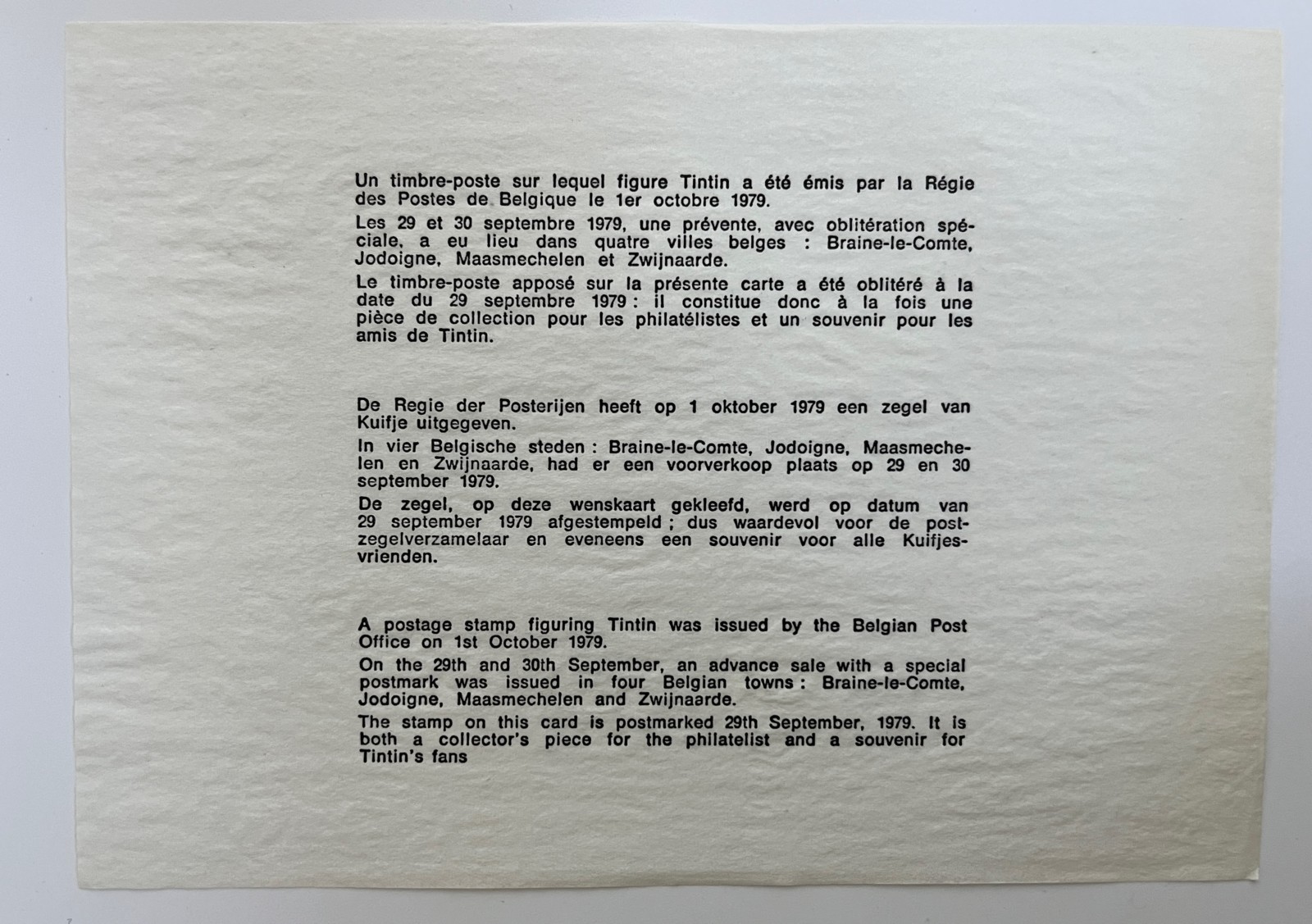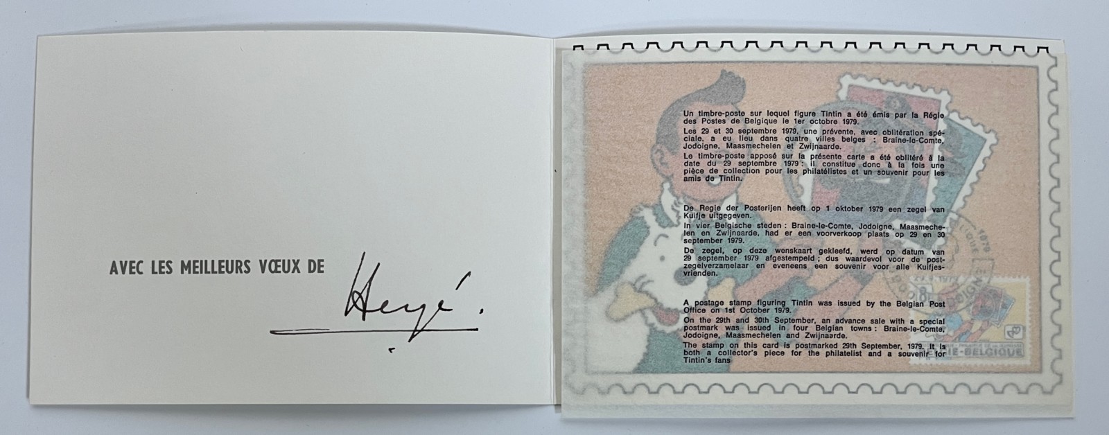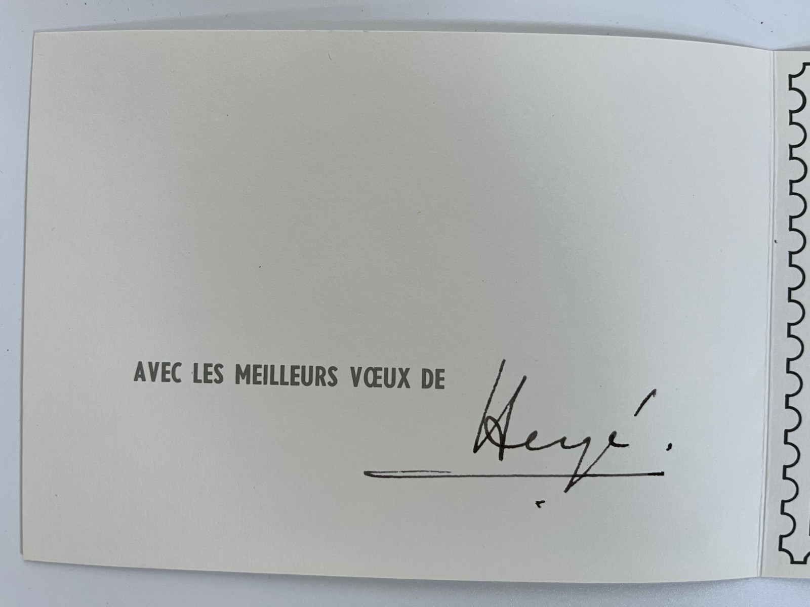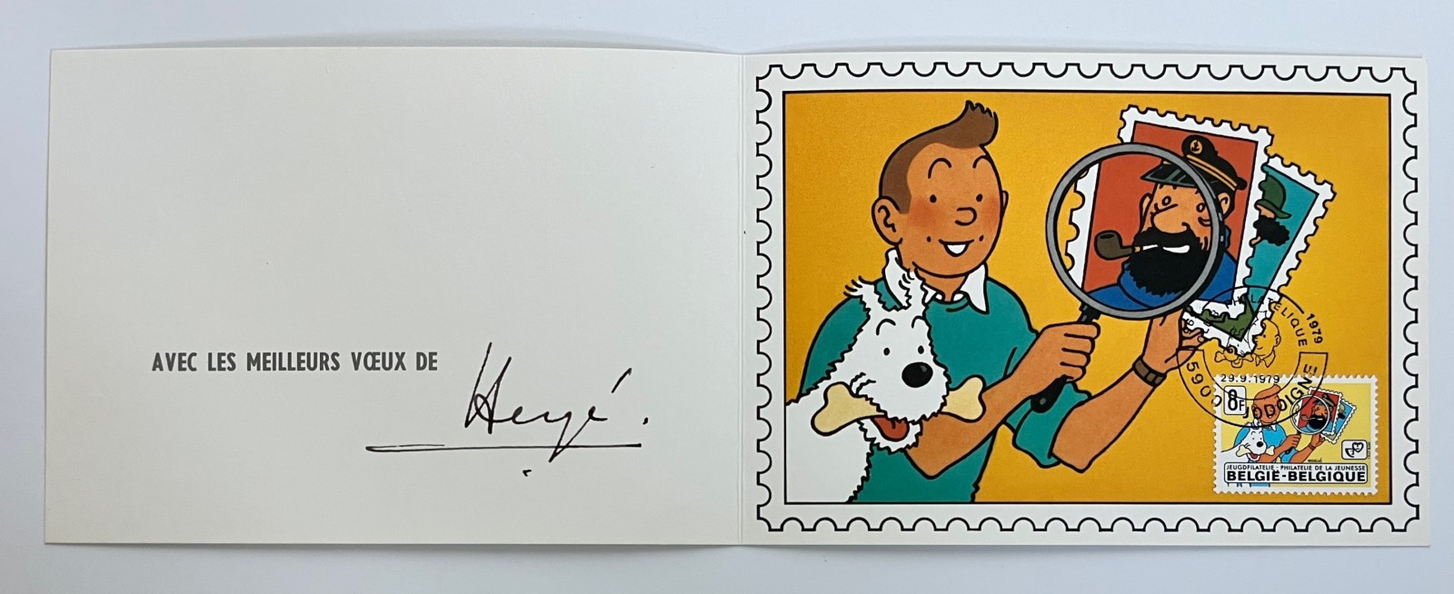 Hergé – Tintin – Carte de voeux – Reproduction Timbre philatélie de la jeunesse – Signée par Hergé – 1980