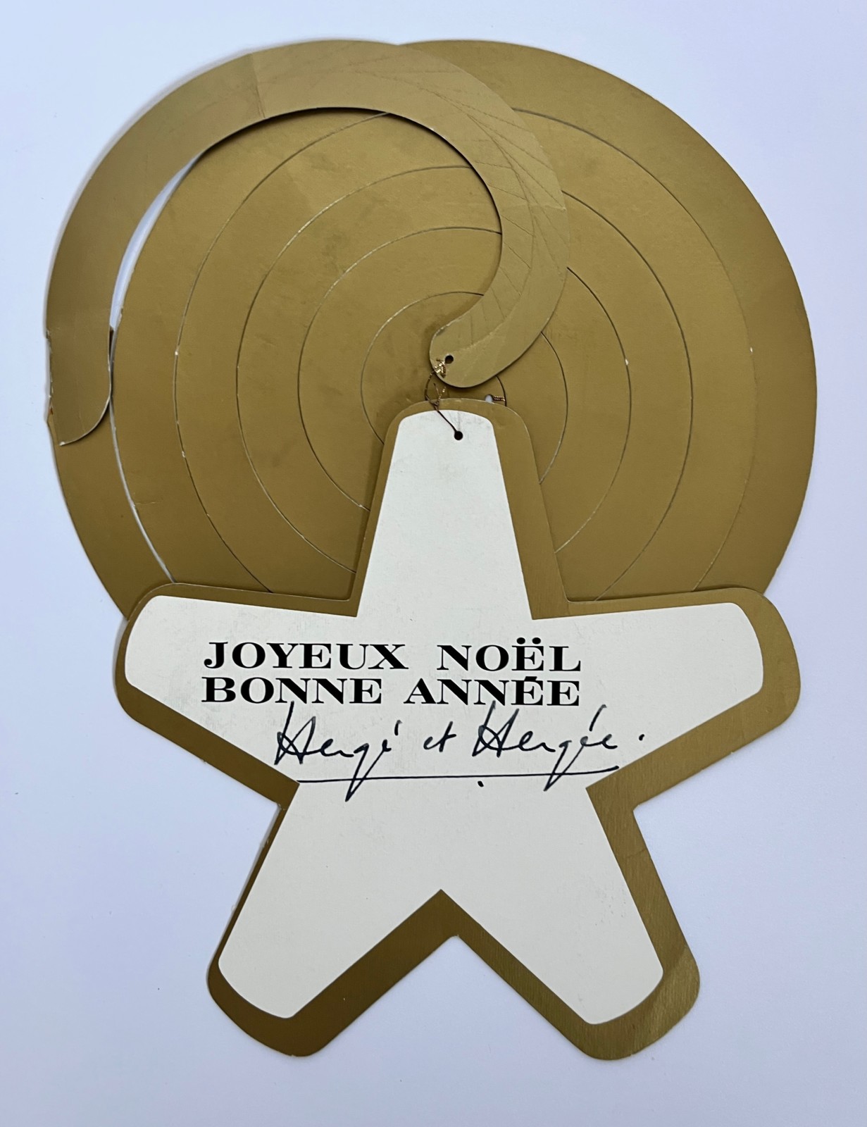 Hergé – Tintin – Carte de voeux – Spirale étoile dorée – Signée par Hergé – 1972