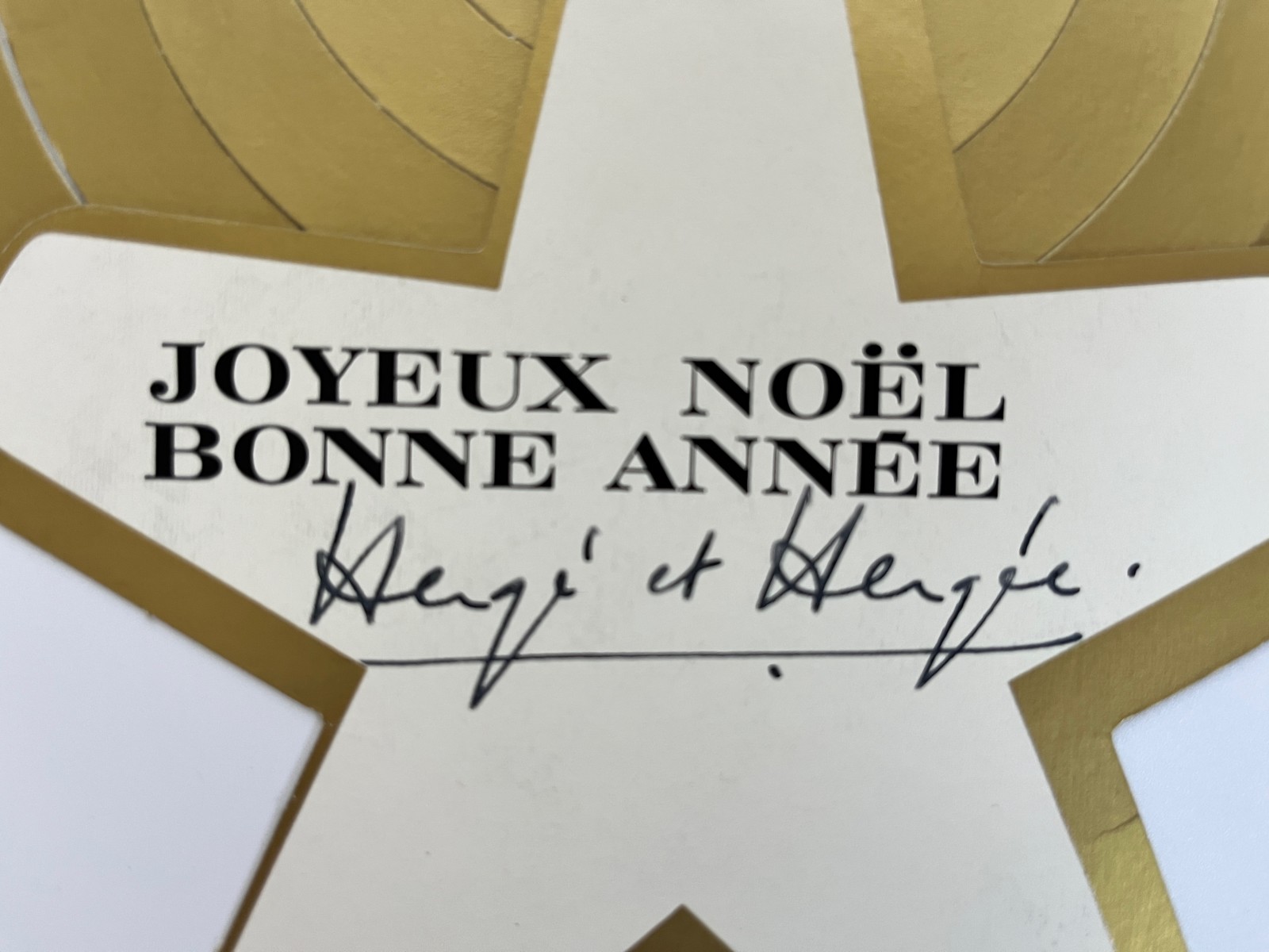Signée par Hergé et Hergée – Le texte ‘Joyeux Noël et bonne année’ est imprimé