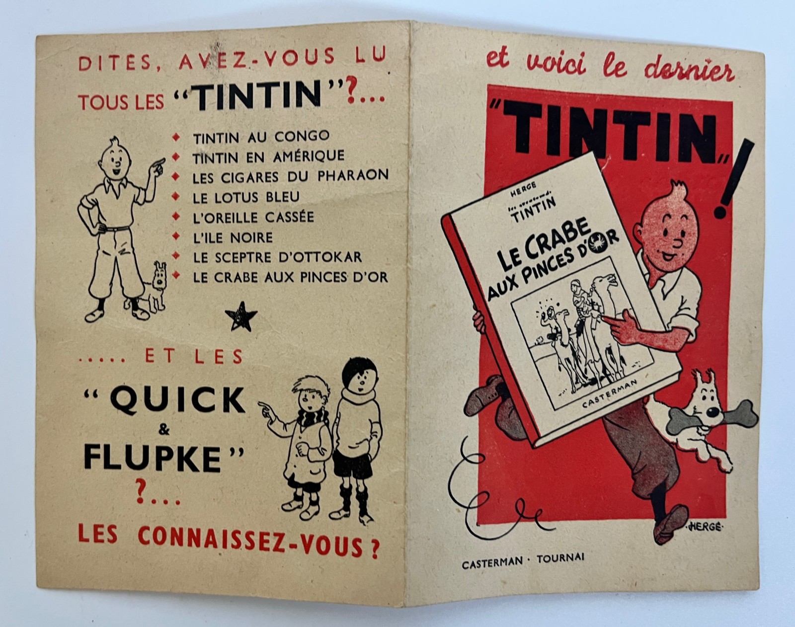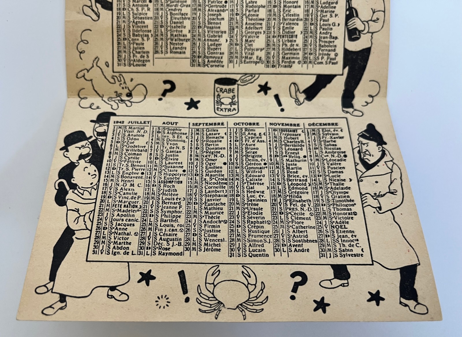 Hergé – Tintin et le crabe aux pinces d’or – Calendrier publicitaire – Casterman – 1942