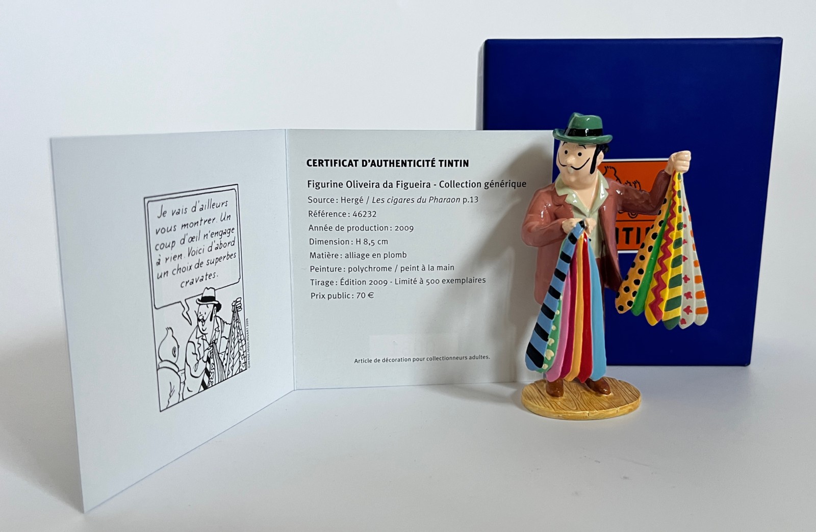 Figurine inspirée des Aventures de Tintin Les Cigares du Pharaon– Collection Moulinsart Plomb: Collection générique – Tirage limité numéroté à 500 exemplaires pour l’édition 2009