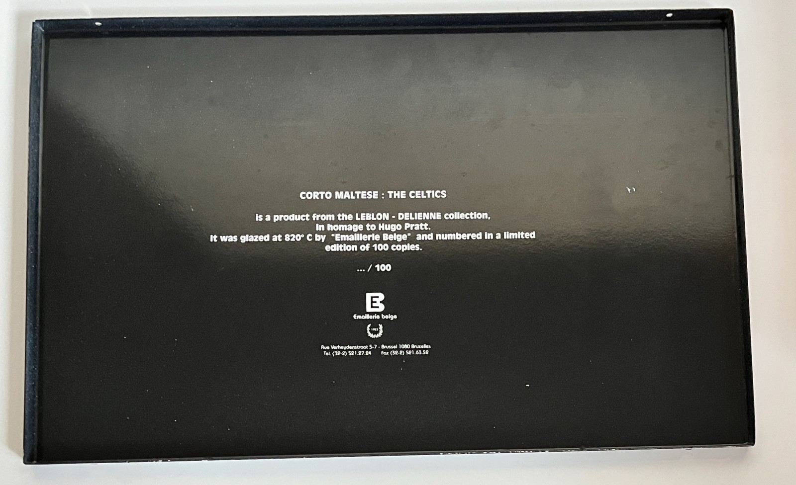 Preuve d’authenticité imprimée à l’arrière de la plaque (non numérotée)
