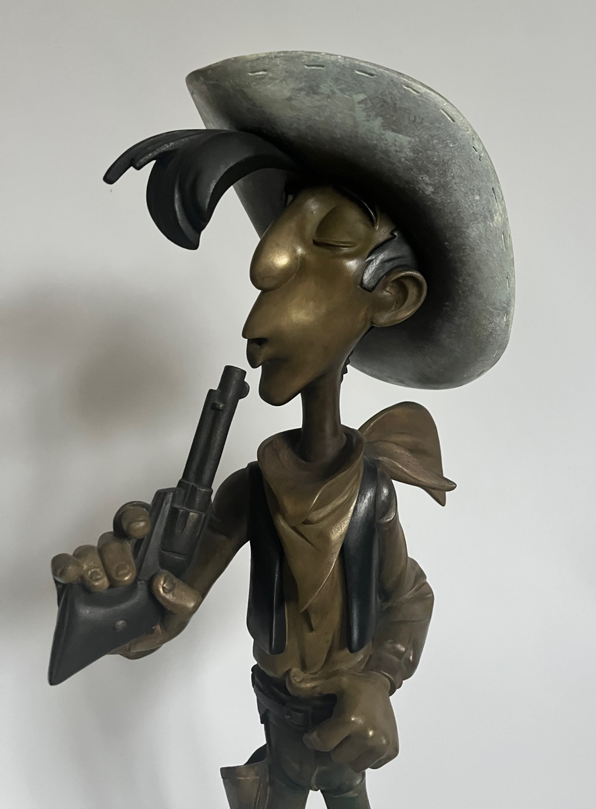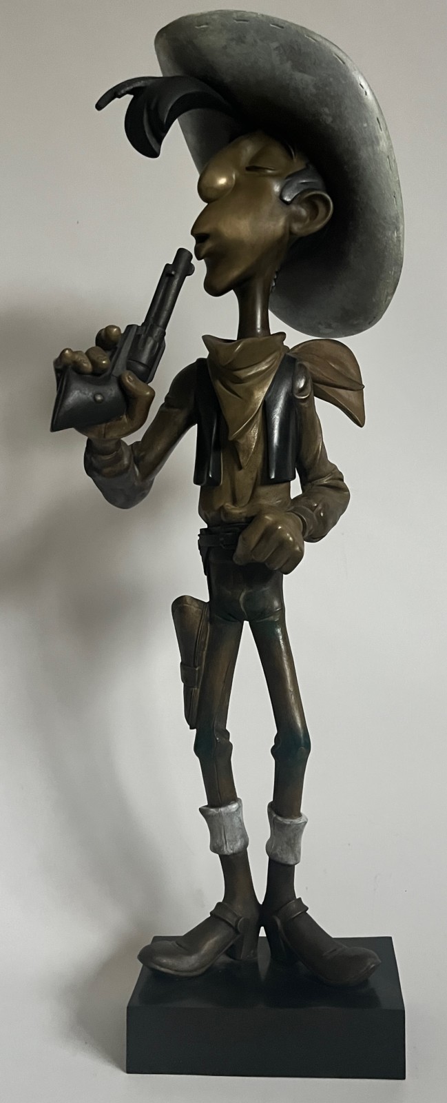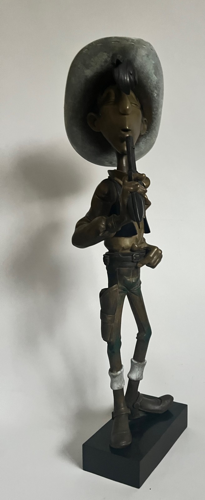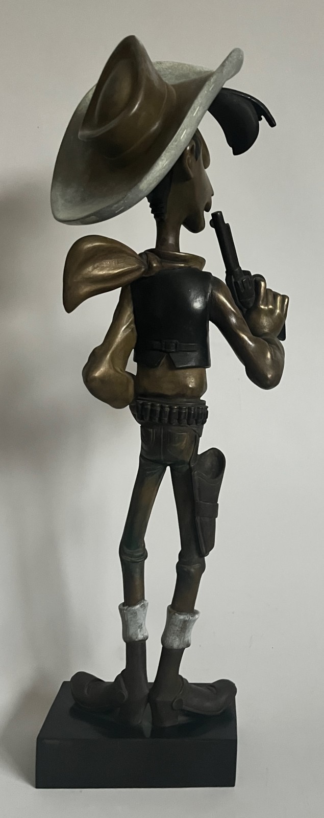Statuette de Lucky Luke en bronze composite (et résine noire pour le socle)