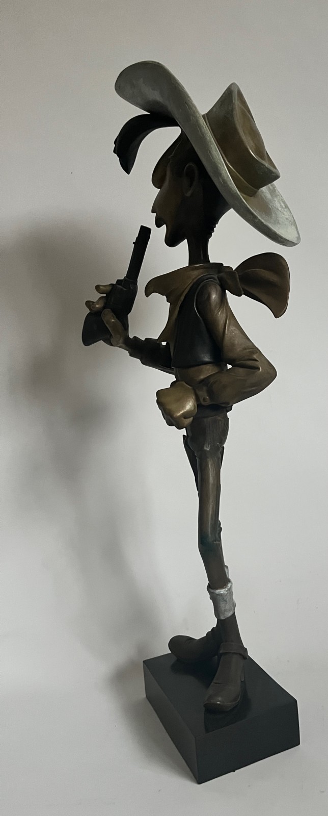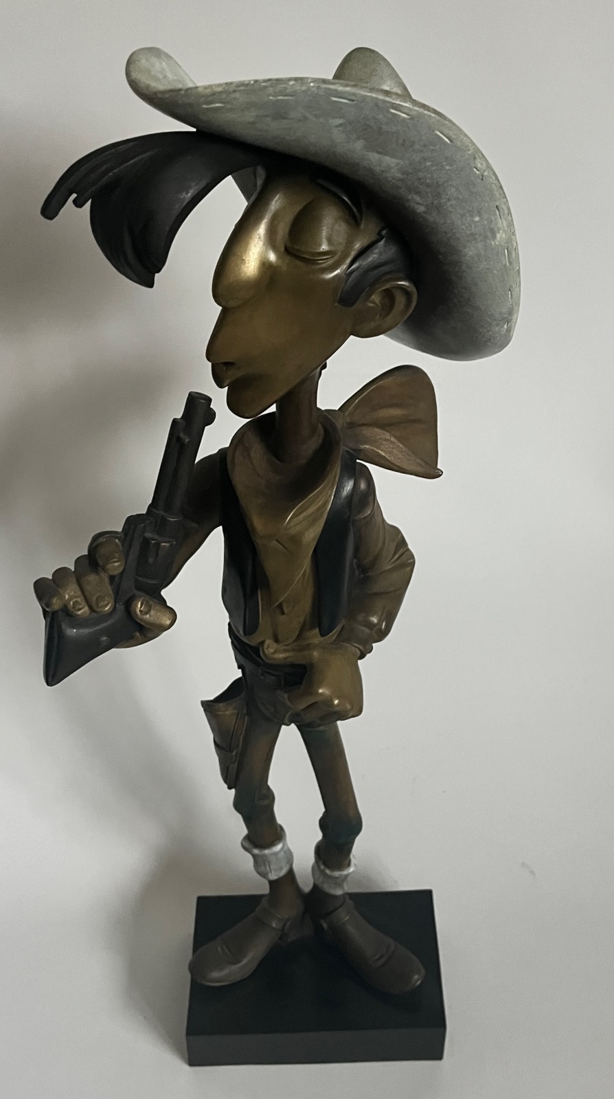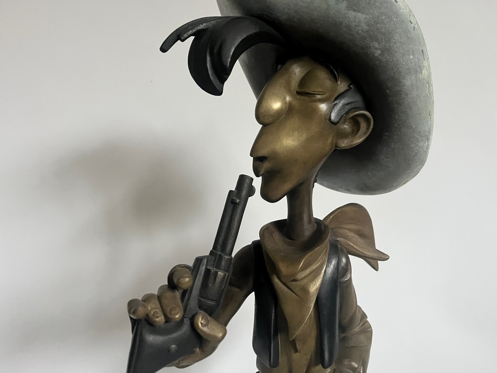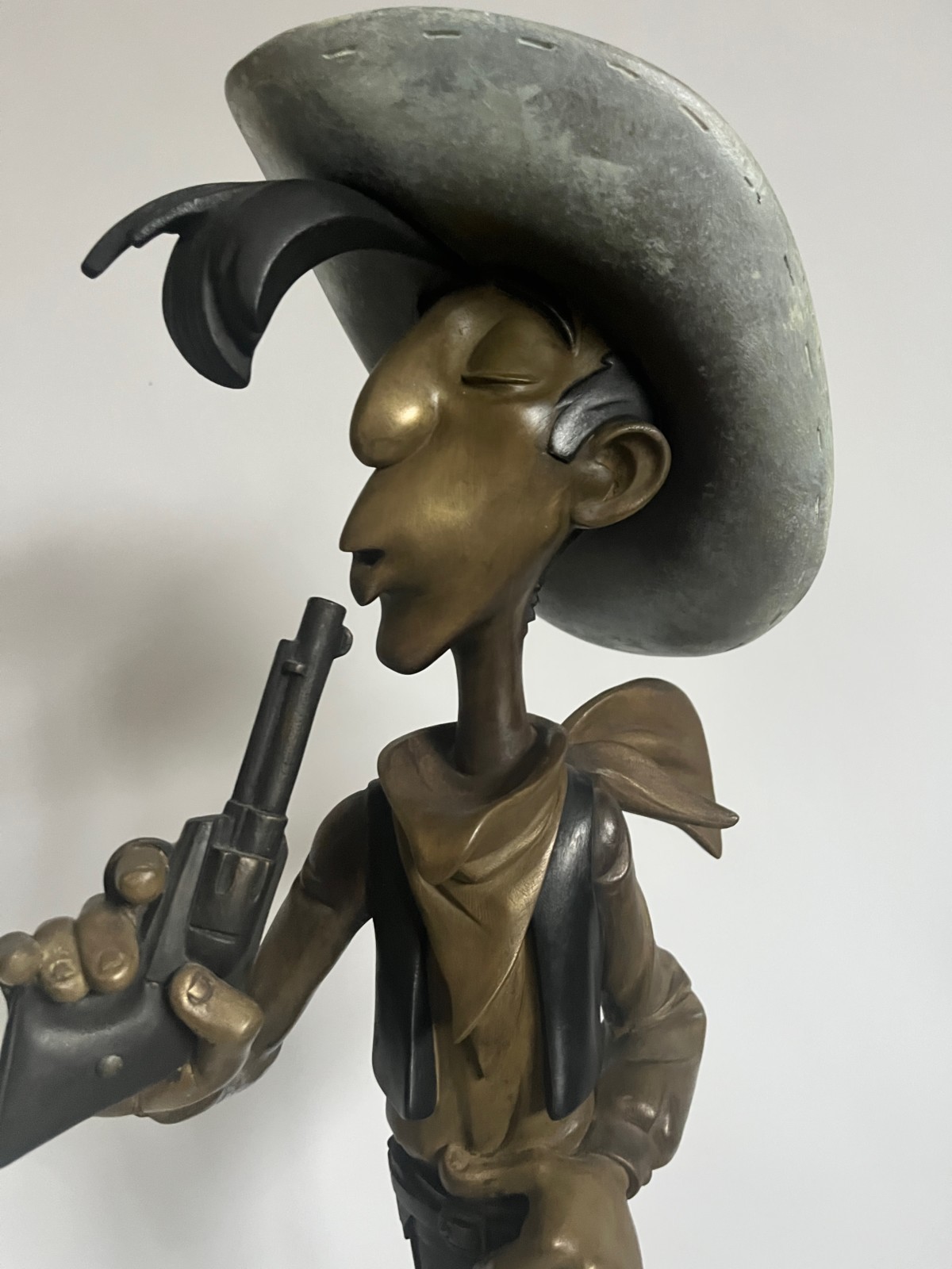 Statuette de Lucky Luke en bronze composite (et résine noire pour le socle)