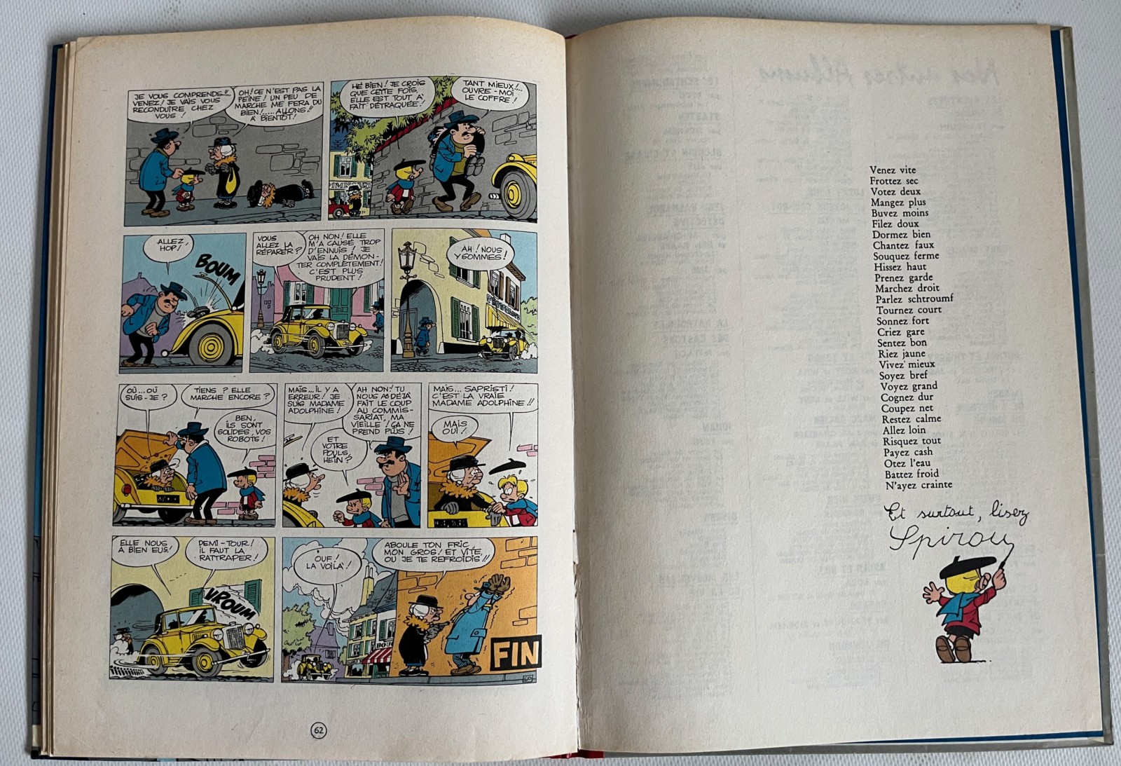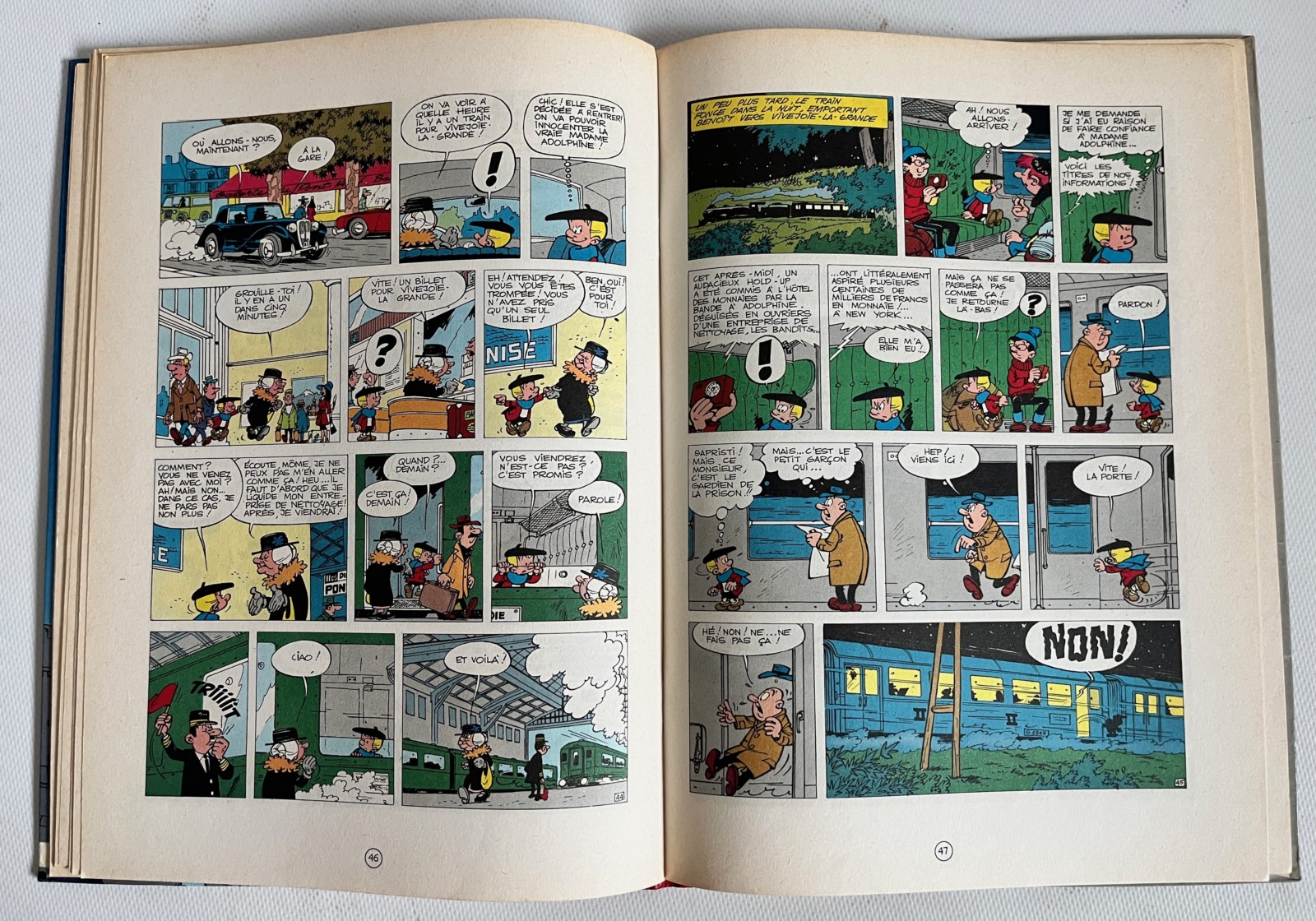 Très bel état – Plats bien vifs et colorés, pelliculage parfait – Coins légèrement émoussés – Dos rouge en très bel état ainsi que les coiffes – Tranches non frottées – Cahier intérieur en bel état – Homogène – Les agrafes n’ont pas déteint – Pas de déchirures – Quelques discrètes pliures de lecture – Présence de tâches de lecture davantage concentrées sur les premières pages – Pas de déchirures