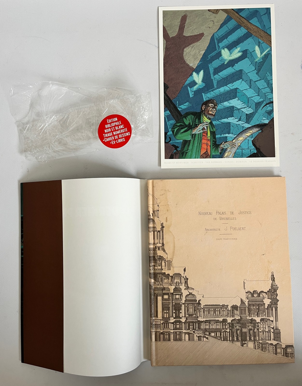 -Le carnet (reliure en spirales) de croquis – Tirage limité /799 exemplaires – Signé par Schuiten en 1ère page et par Gunzig et Van Dormael sur la couverture arrière – Avec ex libris signé par Schuiten et Van Dormael – Editions Blake et Mortimer – 2019