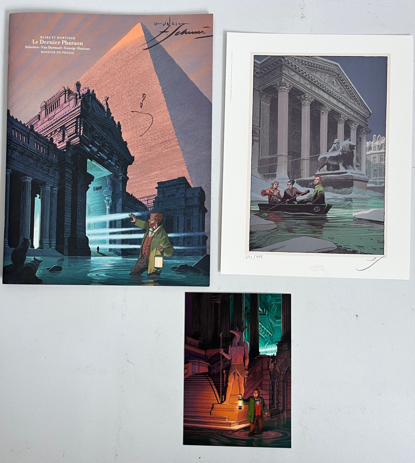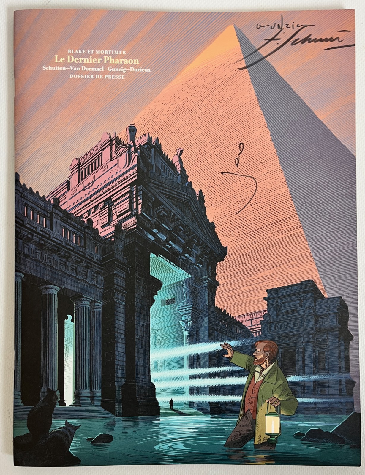 -Le dernier Pharaon – Format à L’italienne – Avec ses 3 ex libris signés par les auteurs (en tout ou en partie) – Inclus une dédicace des 4 auteurs en page de titre – Editions Blake et Mortimer – 2019