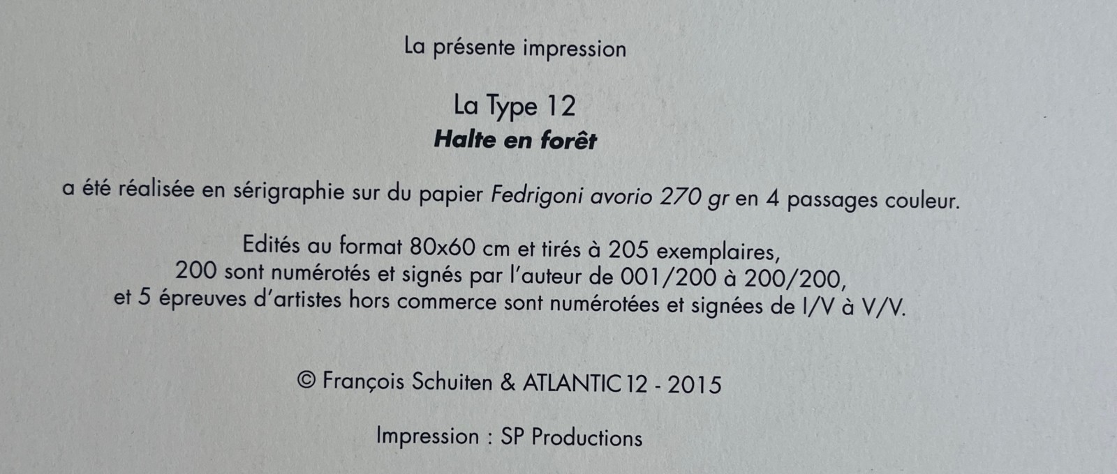 Schuiten, François – Sérigraphie La Type 12 – Halte en forêt – Signée – Atlantic 12 – 2015