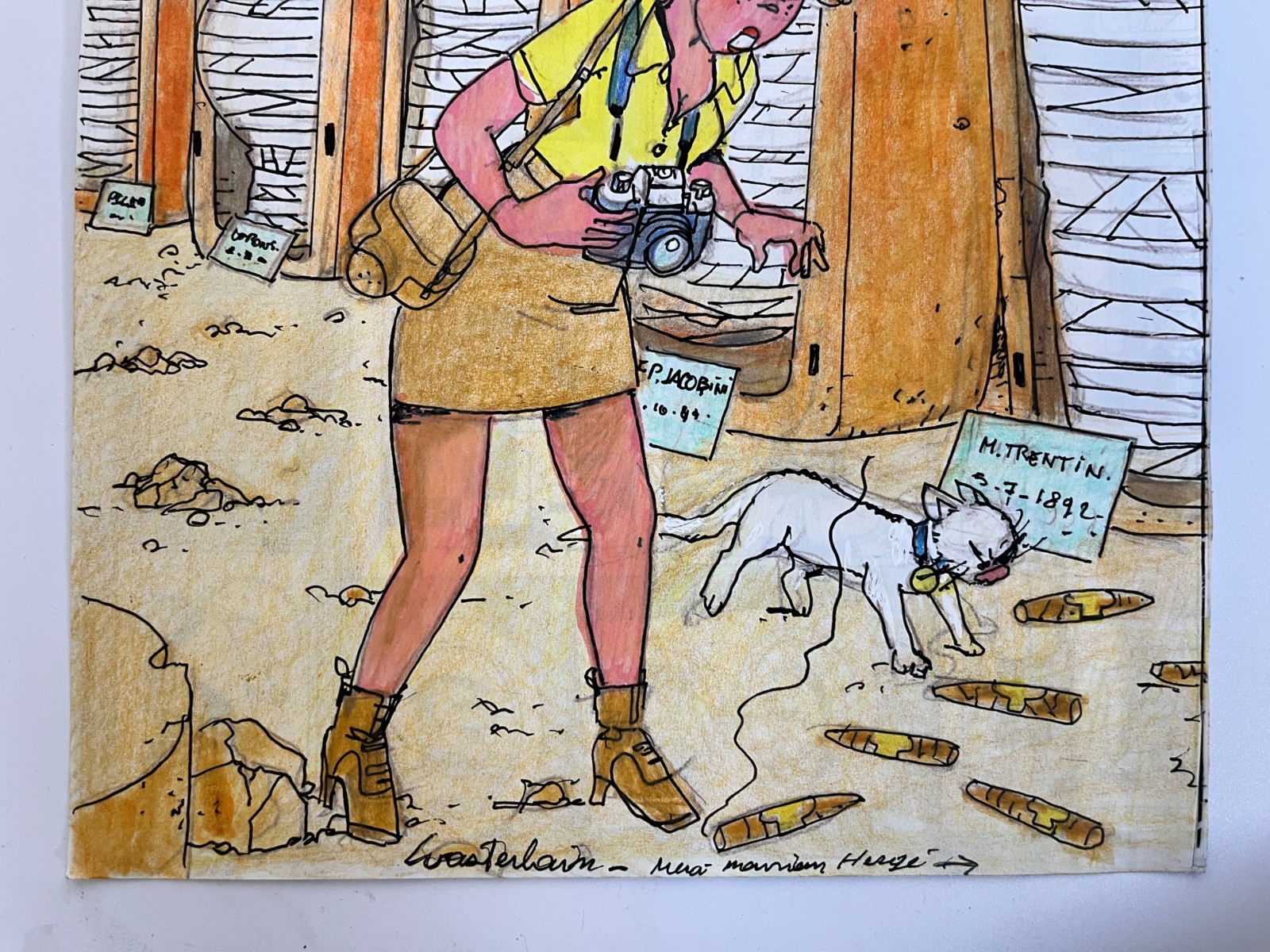 Wasterlain – Jeannette Pointu – Dessin original Merci Monsieur Hergé – Les Cigares du pharaon