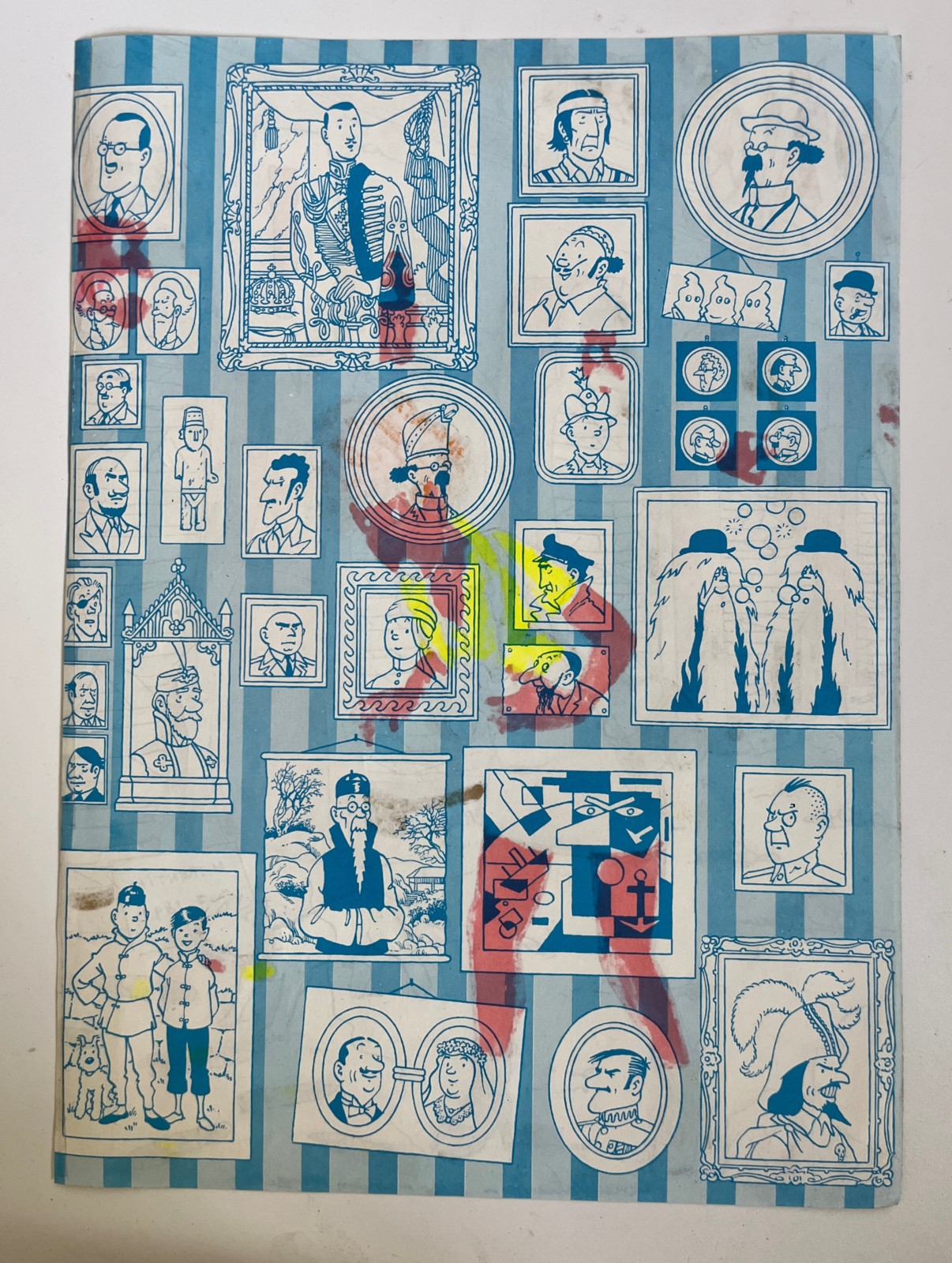 Exemplaire unique – Signé par Wasterlain – Feutre, encre et crayons de couleurs – Dessiné à l’avant d’une page de garde d’un album Tintin